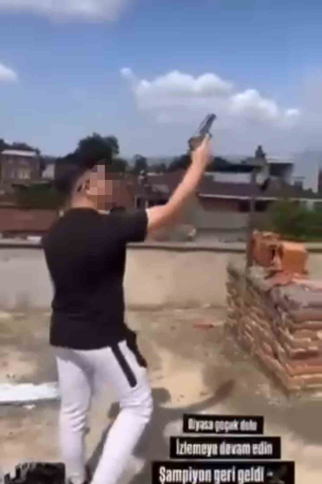 Olay, Mustafakemalpaşa ilçesi Dere Mahallesi’nde meydana geldi. Edinilen bilgiye göre, 14 yaşındaki Muhammed K., evinin balkonundan tabanca ile havaya defalarca ateş açtı. Yaşananları “piyasa çocuk dolu, izlemeye devam edin Şampiyon geri döndü” sözleriyle sosyal medyada paylaştı. Görüntülerin büyümesi ve tepki görmesi üzerine Muhammed K., polis ekipleri tarafından yakalanarak gözaltına aldı. Olayla kullanılan tabancaya el konulurken Muhammed K.’nın Çocuk Büro Amirliği’ndeki işlemleri sürüyor.