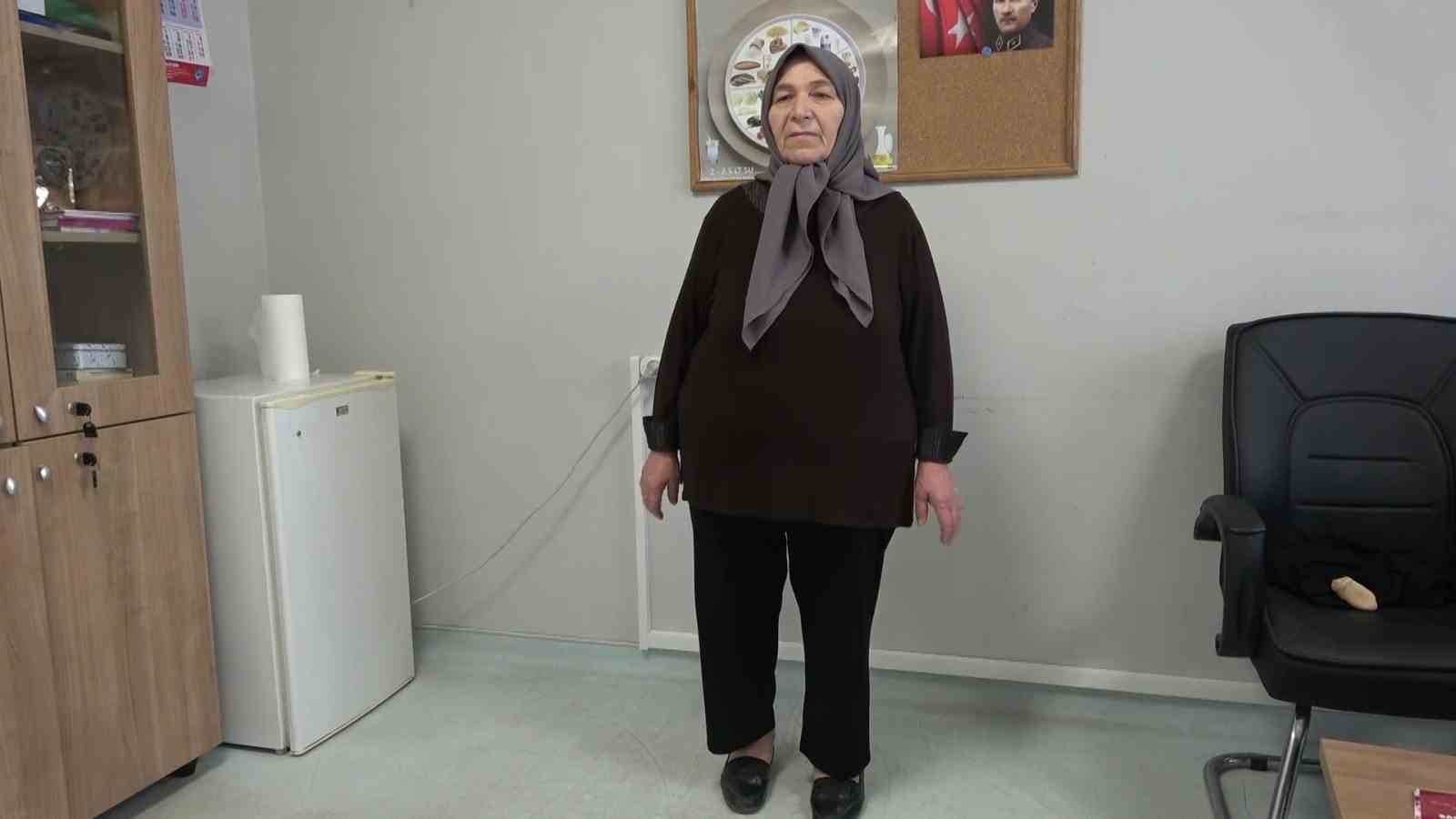Şadiye Yeniceli, günde 15 bardak su içtiğini söyleyerek, “ Kilo nedeniyle yürüyemiyordum. Nefes dahi alamıyordum. Beni buraya aile hekimim yönlendirdi. Ali hocada ilgilendi. Kilomu verdim rahatladım. 102 kilodan 85 kiloya düştüm. Hocam liste verdi onu uyguladım. Günde 15 bardak su içtim. Ekmek, kızartma ve hamur işi yemedim. Hepsini hayatımdan çıkarttım. Kilo verdikten sonra nefes ve yürümem düzeldi” dedi.