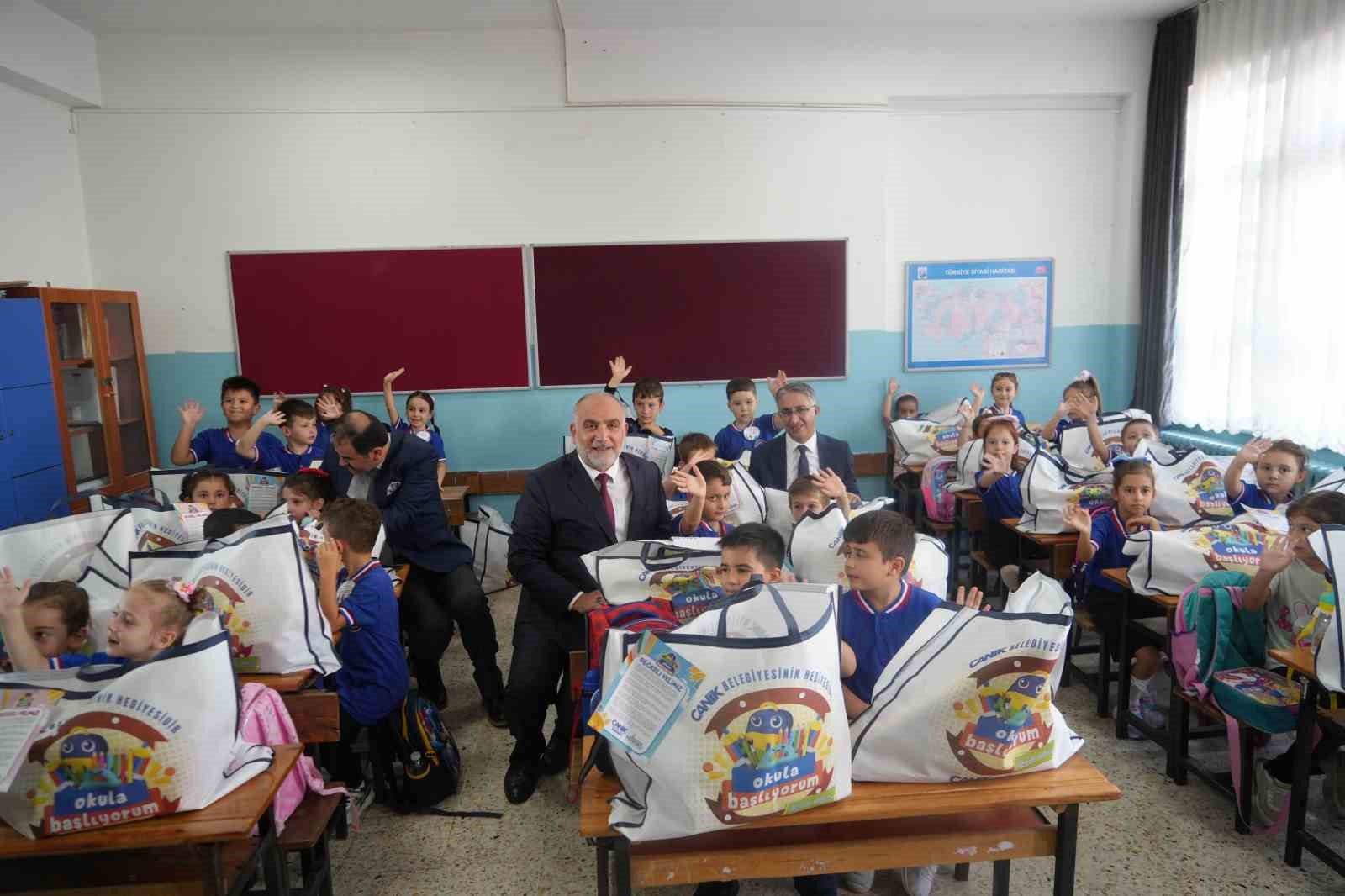 Samsun Canik Belediyesi tarafından, ilçede 1. sınıfa başlayan 2 bin öğrenciye kırtasiye seti ve okul çantası hediye edildi.
