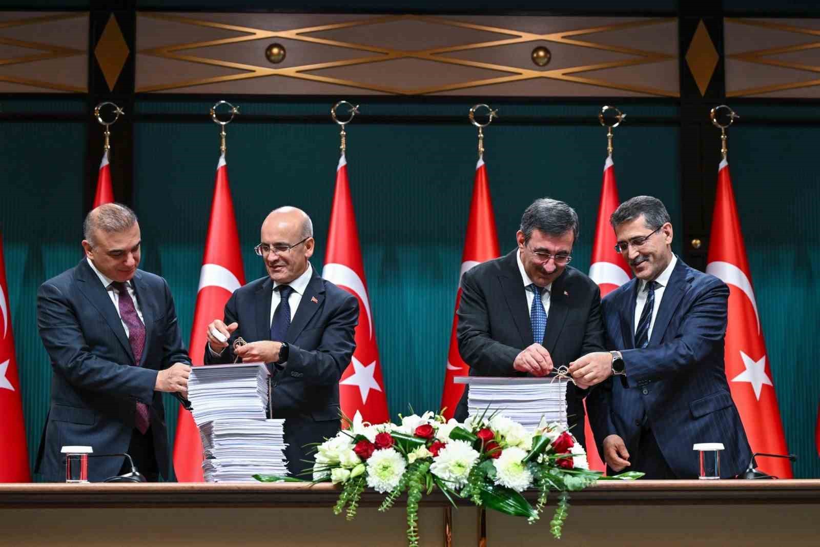 Cumhurbaşkanı Yardımcısı Cevdet Yılmaz, Cumhurbaşkanlığı Külliyesi’nde gerçekleştirilen ‘2025 Yılı Merkezi Yönetim Bütçe Bağlama Töreni’ne katıldı. Yılmaz, AK Parti hükümetlerinin 23’üncü, Cumhurbaşkanlığı Hükümet Sisteminin ise 7’nci bütçesi olan 2025 yılı bütçesi hakkında değerlendirmelerde bulunarak, Türkiye Büyük Millet Meclisine (TBMM) sunulmaya hazır hale gelen 2025 yılı bütçesinin, yapılacak değerlendirmelerin ardından sembolik olarak bağlanacağını belirtti.