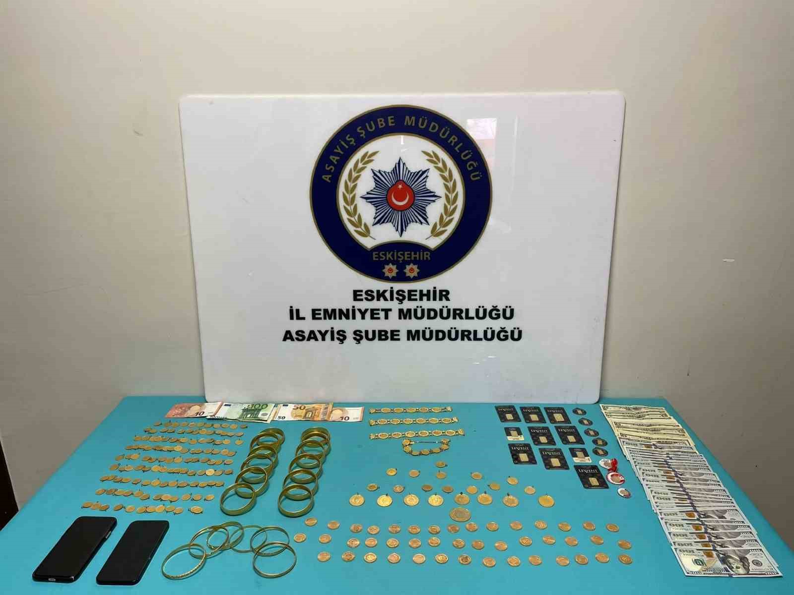 Eskişehir Emniyet Müdürlüğü’ne bağlı Asayiş Şube Müdürlüğü Dolandırıcılık Büro Amirliği ekipleri tarafından, kendisini polis ve savcı olarak tanıtma suretiyle dolandırıcılık yapan şahısların yakalanması amacıyla çalışma başlatıldı. Telefonda kendilerini polis ve savcı olarak tanıttıktan sonra Eskişehir’de bulunan 2 evden parmak izi incelemesi bahanesiyle altın ve döviz aldığı belirlenen şüphelilerin kullandığı aracı tespit eden ekipler, Plaka Tanıma Sistemleri (PTS) ile inceleme başlattı. Gaziantep’e gittiği belirlenen şüpheliler, Nurdağı ilçesi girişinde kolluk kuvvetleri tarafından yol kontrol noktasında yakalanarak gözaltına alındı. Cumhuriyet Savcılığı’ndan alınan izinlerin ardından araçta yapılan aramada, salça kovasının içine poşetlenerek saklanmış vaziyette çok miktarda altın ve döviz ele geçirildi. Mağdurlardan elde edildiği belirlenen altınların ve dövizlerin güncel değerinin yaklaşık 3 milyon 91 bin TL olduğu belirlendi.