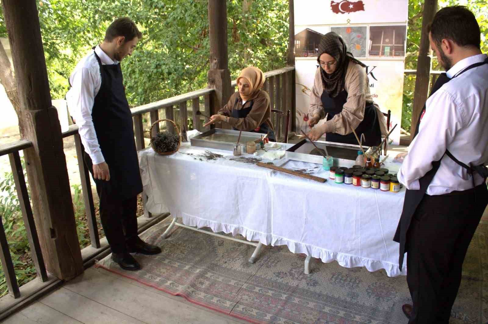 Samsun’un Kavak ilçesinde ’ebru sanatı’, 4 asırlık Bekdemir Camisi’nden ilham alınarak icra edildi.