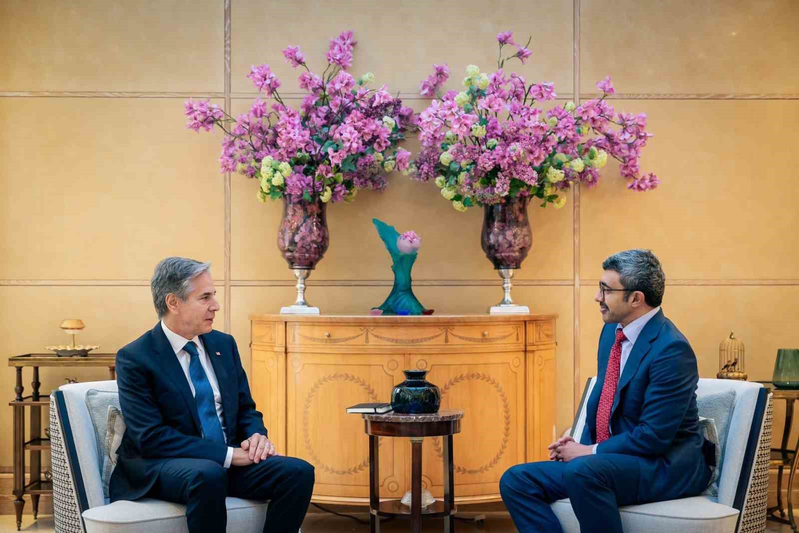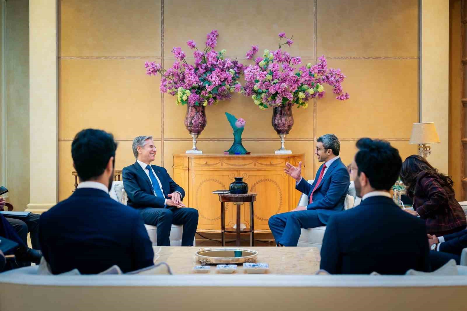 ABD Dışişleri Bakanı Antony Blinken, Birleşik Arap Emirlikleri (BAE) Dışişleri Bakanı Şeyh Abdullah Bin Zayed Al Nahyan ile gerçekleştirdiği görüşmede Gazze Şeridi’ndeki saldırıları sona erdirme ve tüm esirlerin serbest bırakılmasını sağlama çabalarını ele aldı.