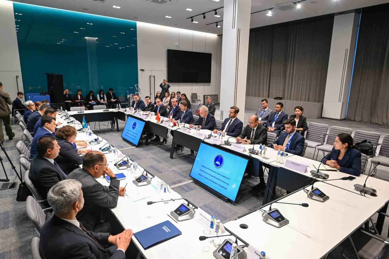Adalet Bakanı Yılmaz Tunç, Türk Devletleri Teşkilatı (TDT) Adalet Bakanları Konseyi Birinci Toplantısı için geldiği Kazakistan’da temaslarını sürdürüyor. Bakan Tunç, başkent Astana’da Kazakistan Adalet Bakanı Azamat Yeskarayev ile görüştü. TDT ülkeleri arasındaki etkileşimin düzenlenen üst düzey toplantılarla her geçen gün arttığını kaydeden Tunç, Türkiye ve Kazakistan arasındaki dostane ilişkilerin güçlü bir iş birliği ile devam edeceğini belirtti. Bakan Tunç, “Ortak tarih ve kültürel bağlara sahip iki kardeş ülke olarak Türkiye ve Kazakistan arasında adalet alanında iş birliğinin artması için bizler en üstün gayreti göstermenin çabası içerisinde olacağız. Türkiye’de gerçekleştirilen yargı reformları hakkında bilgi vermekten ve özellikle dijital dönüşüm, mahkemelerde hızlı ve etkin yargı süreçleri gibi konularda bu deneyimleri Kazakistan ile paylaşmaktan mutluluk duyarız” dedi.