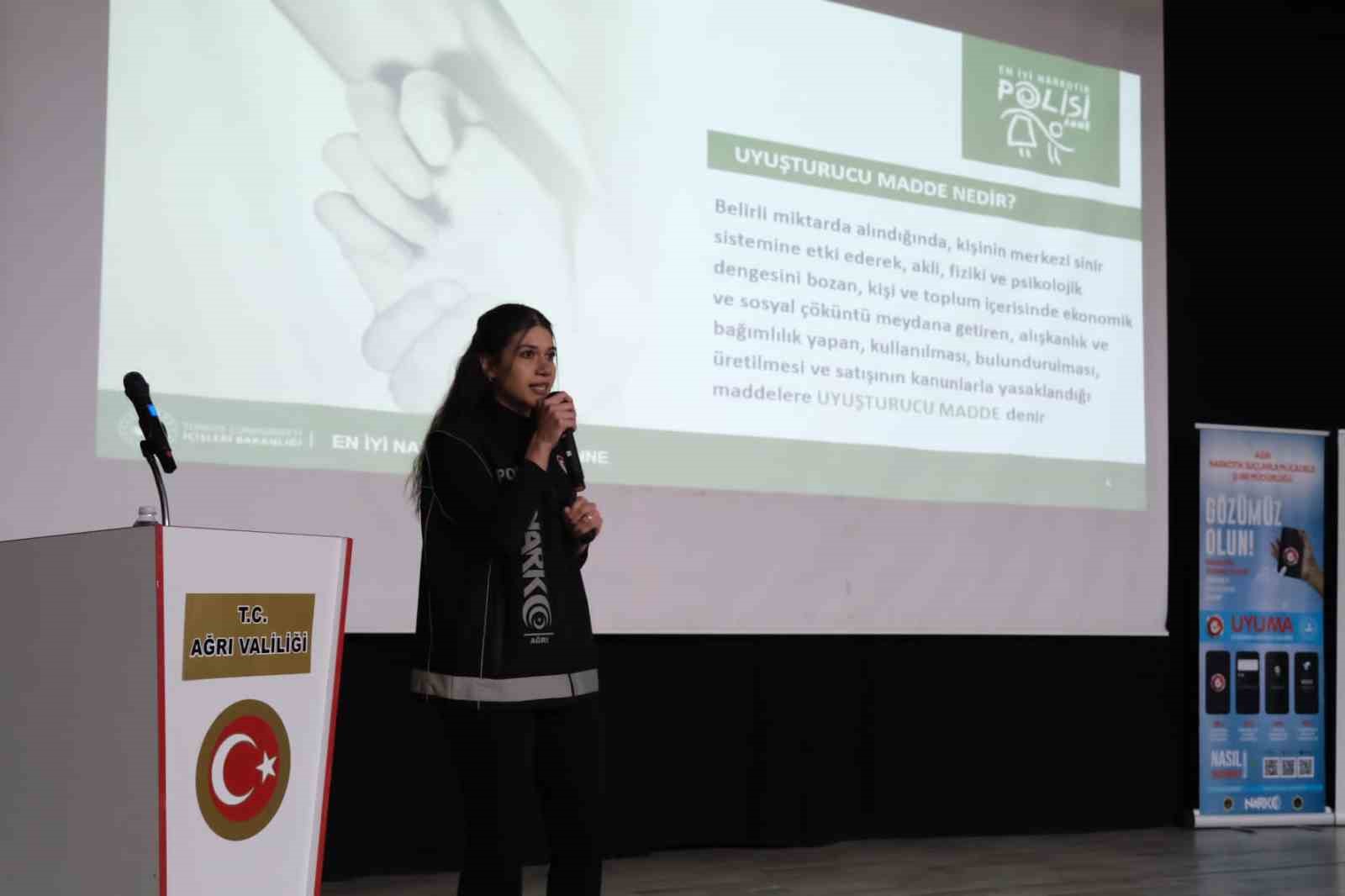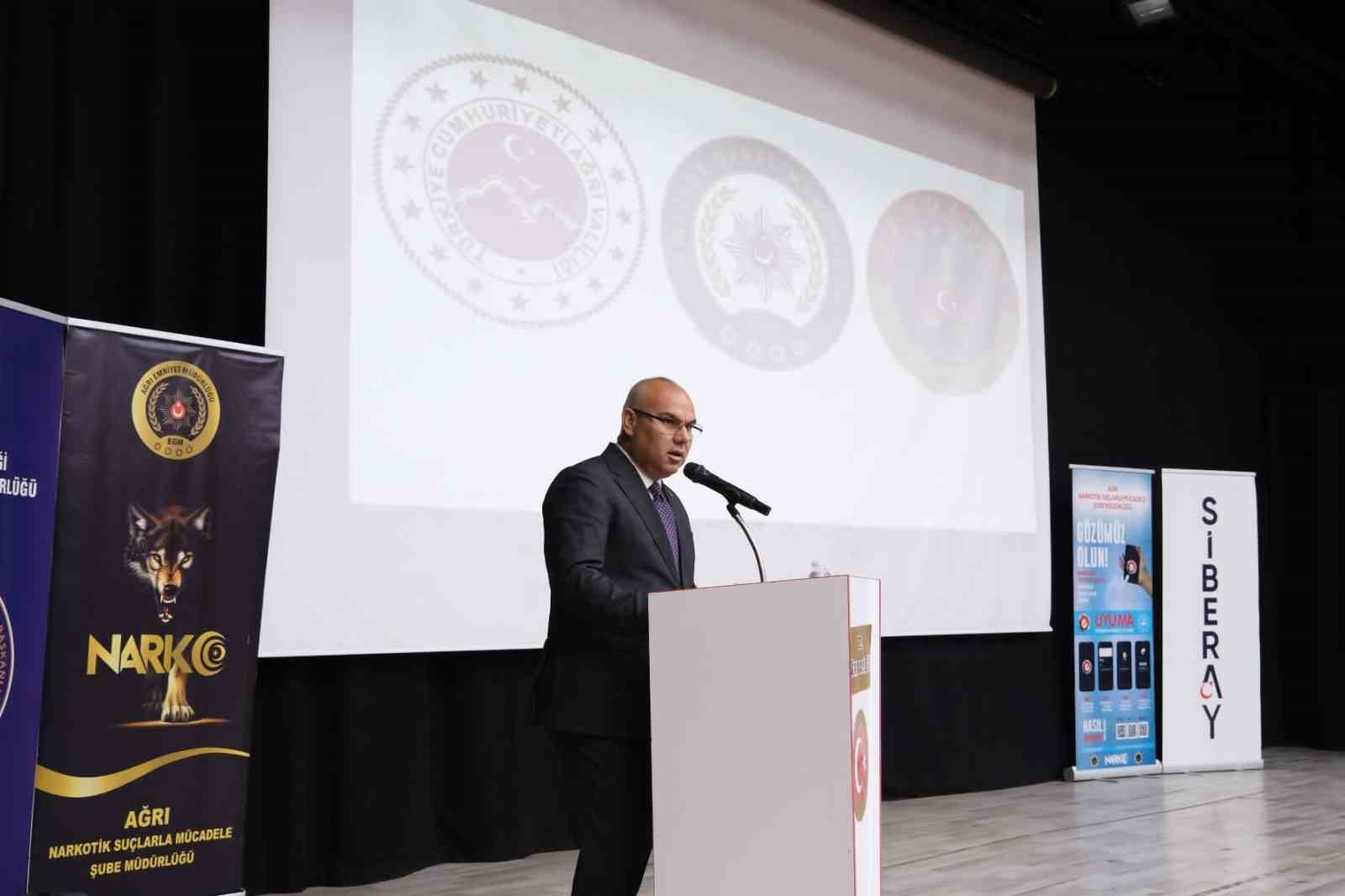 Ağrı Valisi Mustafa Koç ve eşi Neslihan Gül Koç’un katılımıyla düzenlenen “En İyi Narkotik Polisi; Anne” Projesi bilgilendirme semineri, il protokolü ve vatandaşların yoğun ilgisiyle gerçekleştirildi.