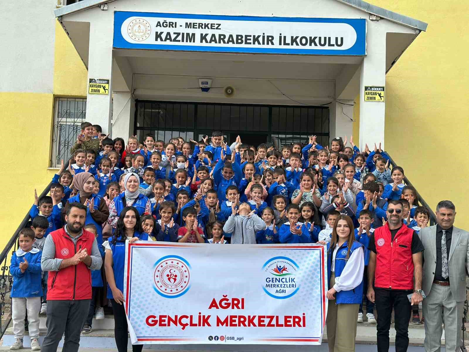 Ağrı Gençlik ve Spor İl Müdürlüğü bünyesinde faaliyet gösteren Gençlik Merkezi üyeleri, “Merkezim Her Yerde” projesi kapsamında il genelindeki okulları ziyaret ederek, öğrencilere unutulmaz anlar yaşatıyor.