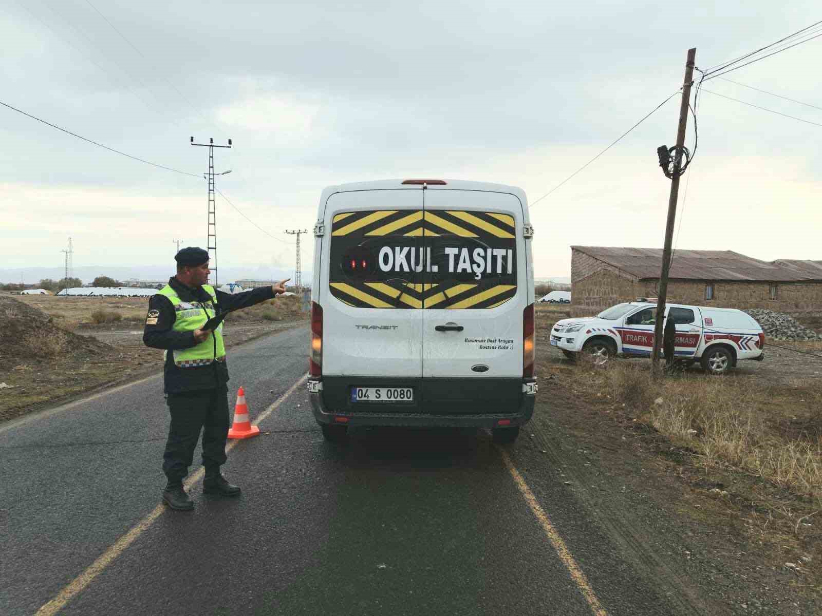 Ağrı İl Jandarma Komutanlığı ekiplerince yapılan denetimlerde, 125 okul servis aracı kontrol edildi. Denetimlerde kural ihlali yapan 16 araç sürücüsüne toplam 34 bin 251 TL idari para cezası uygulanırken, 3 araç trafikten men edildi.