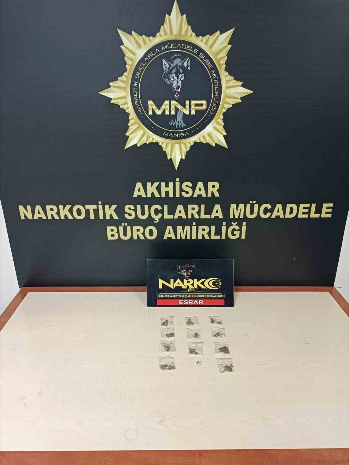 Akhisar ilçesinde Cumhuriyet Başsavcılığı koordinesinde Akhisar Narkotik Suçlarla Mücadele Büro Amirliği ekiplerince gerçekleştirilen uyuşturucu operasyonunda E.A. (21) isimli şüpheli yakalandı. Saruhanlı’da ikamet eden E.A’nın evinde yapılan aramada, parçalar halinde 7.74 gram esrar ve 10 adet sentetik hap ele geçirdi. Gözaltına alınan E.A. çıkarıldığı mahkemece tutuklanarak cezaevine gönderildi.