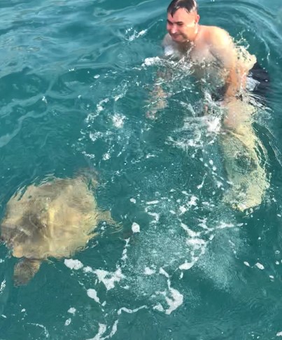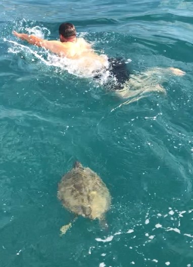 İlginç olay, Alanya Tersanesi açıklarında meydana geldi. Amatör balıkçılık yapan Mehmet Ali Tayyar ve arkadaşı Recep Türkmen, kendi tekneleriyle tersane önüne demirleyerek dalış yapmak istedi. Aynı zamanda pervanelerine takılan oltayı da temizlemek isteyen ikili dalışa başladıktan 15-20 dakika sonra, sol yüzgeci olmayan yaklaşık 80 santimetre boyunda carretta caretta onlara yaklaştı. İlk başta korkarak tekneye çıkan ikili, daha sonra yaklaşık 1,5 saat boyunca kaplumbağa ile birlikte yüzdü. İkilinin o anları ise cep telefonu kamerasına yansıdı.