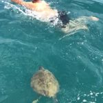 Antalya’nın Alanya ilçesinde, tarihi tersane önünde sabah saatlerinde dalış yapmak isteyen iki arkadaş, yaklaşık 80 santimetre boyunda carretta caretta ile karşılaştı. İlk başta korkan ikili, daha sonra yaklaşık 1,5 saat boyunca kaplumbağa ile birlikte yüzdü.