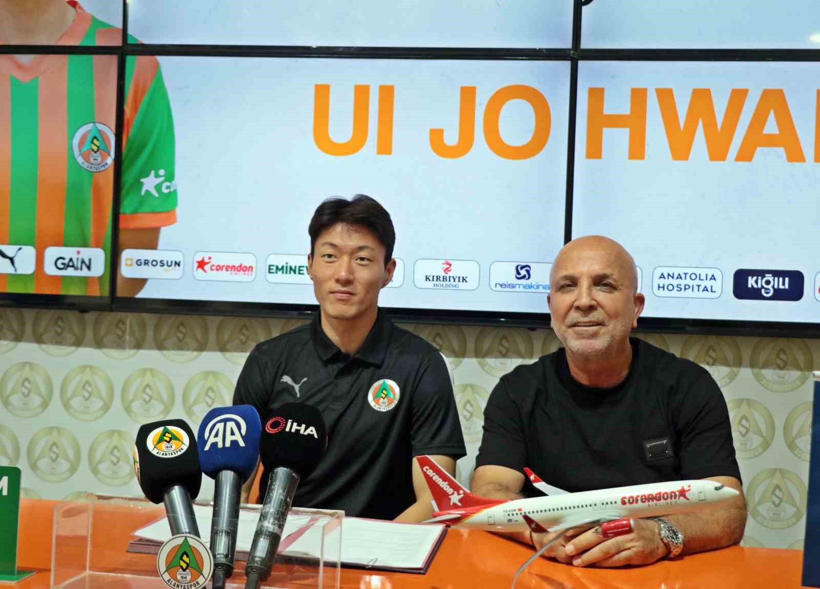 Corendon Alanyaspor Başkanı Hasan Çavuşoğlu ise, geçen sezon turuncu yeşilli ekipte kiralık olarak forma giyen Ui-Jo Hwang ile sözleşme imzaladıklarını belirterek, “Hwang’ın transferini resmi hesaplarımızdan duyurmuştuk. Bugün de imza törenini gerçekleştiriyoruz. Hwang, geçen sezon da kulübümüzde görev yapmıştı ama sakatlığı nedeniyle fazla verim sağlayamamıştı. İnşallah bu sene iyi olacak. Kendisi zaten biliyorsunuz, tanıyorsunuz, bu sezonda hazır geldi zaten. Tabii Hwang’ın amacı ve hedefleri olduğunu biliyoruz. Bizim acımızdan da başarılı olması ve kulübümüze katkı sağlaması çok önemli. Bu sene Hwang’dan beklentimiz çok yüksek, kendisi de bunun bilincinde zaten bu yüzden kadromuza dahil ettik. Çeken maçlarda gol bölgesinde bir takım sıkıntılar oldu ama şimdi forvet hattımız daha güçlendi. Serdar ve Cordova ile birlikte de güçlü bir forvet hattı oluşturduğumuzu düşünüyorum. İnşallah Hwang için de kulübümüz içinde hayırlısı olur” dedi.