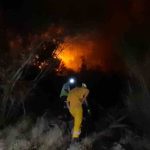 Muğla’nın Menteşe ilçesinde meydan gelen orman yangınında alevler geceyi aydınlatırken, ekiplerin yangına karadan müdahalesi devam ediyor. İki adet gece görüşlü yangın söndürme helikopterleri de çalışmalara devam ediyor.