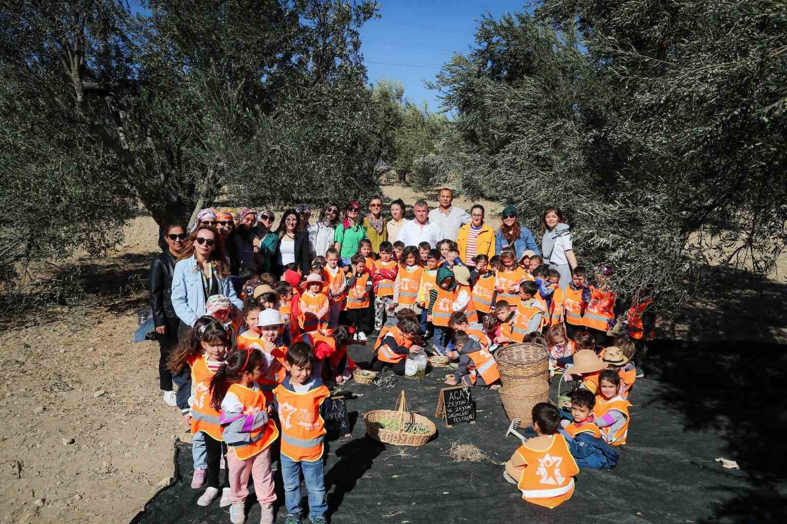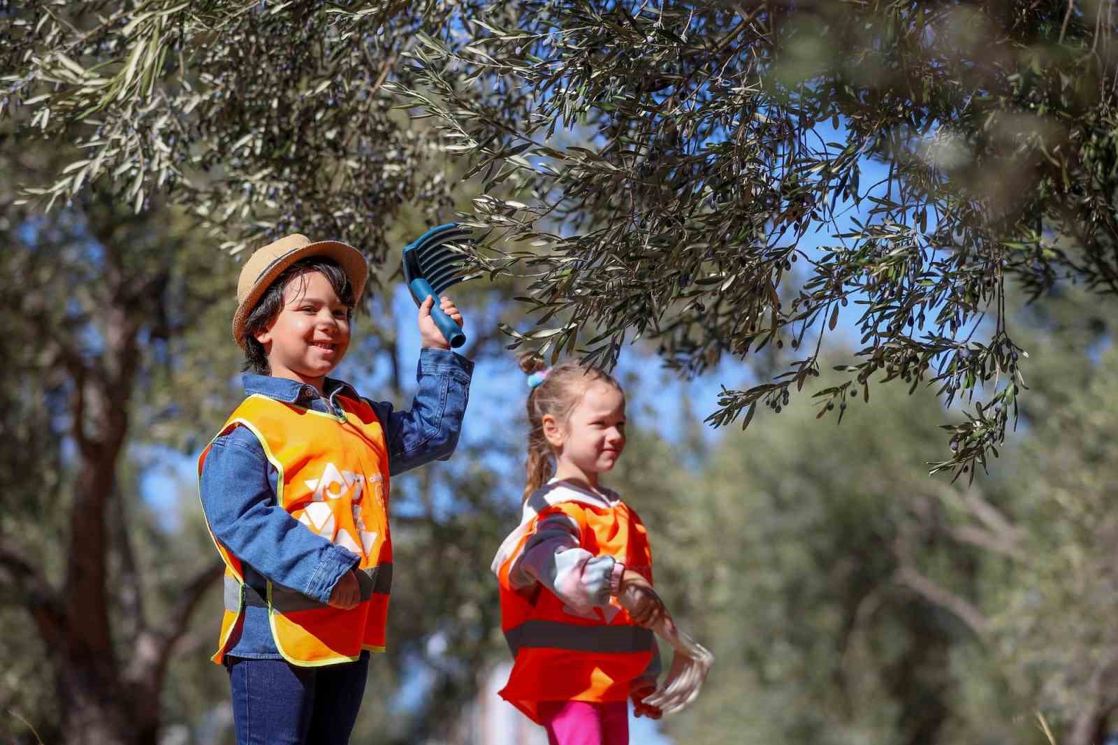 ALİAĞALI MİNİK ÖĞRENCİLER, ZEYTİNYAĞI İLE MEŞHUR ŞAKRAN’DA ZEYTİN HASADI YAPIP,