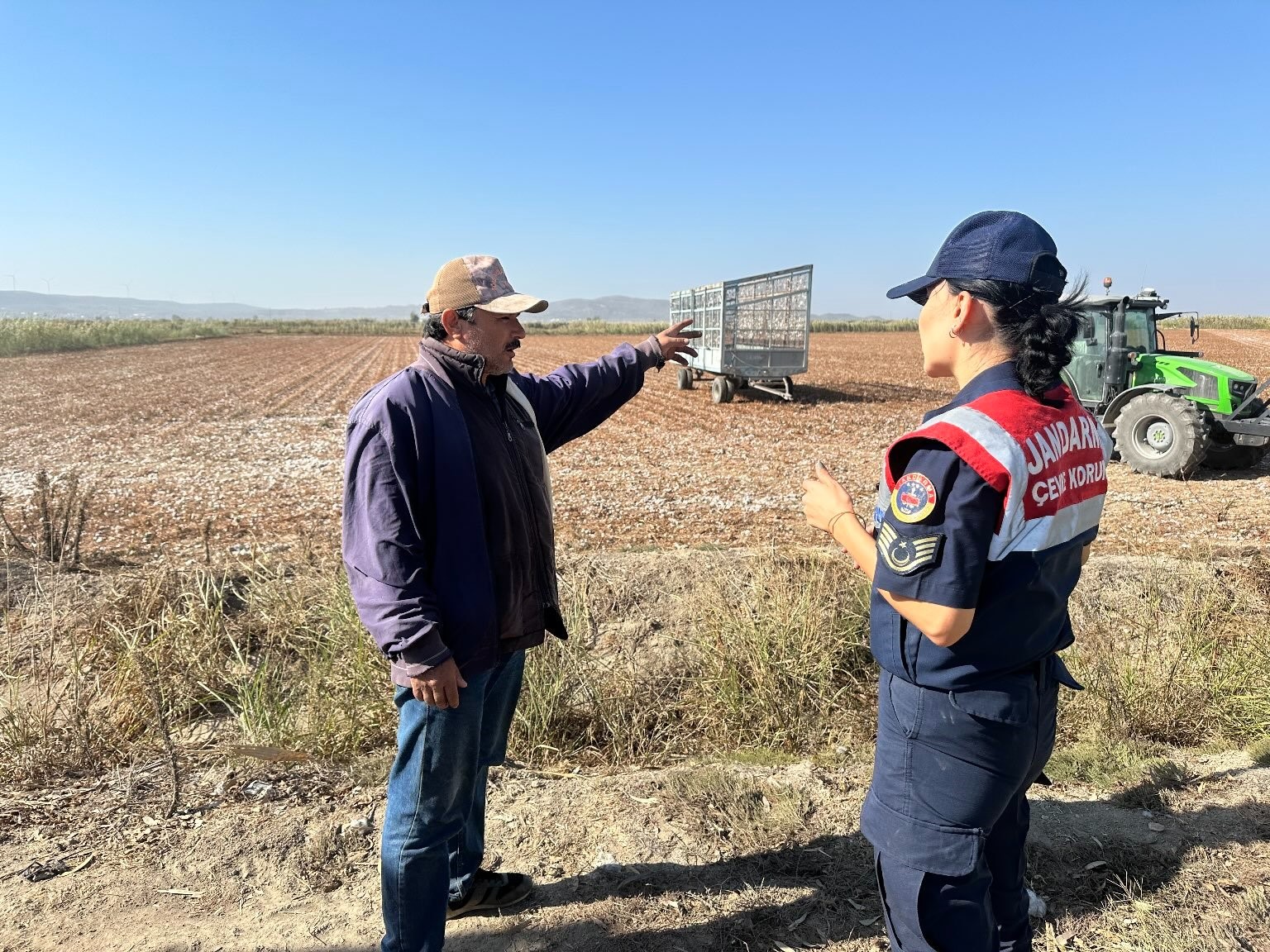 Aydın’ın Didim ilçesinde pamuk tarlasına inen jandarma ekipleri, anız yakımı konusunda üreticileri uyarırken, anız yakmanın dekar başına 386,79 TL cezası olduğu hatırlatıldı.