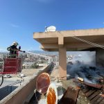 HATAY’DA 4 KATLI APARTMANIN ÇATI KATINDA ÇIKAN YANGIN İTFAİYE EKİPLERİ