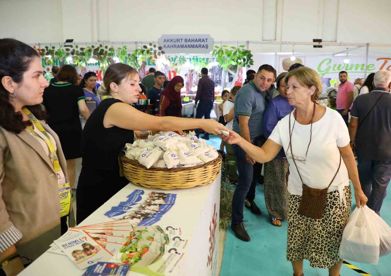 Büyükşehir Belediyesi’nin fuarda yer alan standında el emeğiyle üretilen ev tarhanası ve erişte pişirilerek hem ziyaretçilere tattırıldı hem de evlerinde pişirilmesi için ikram edildi.
