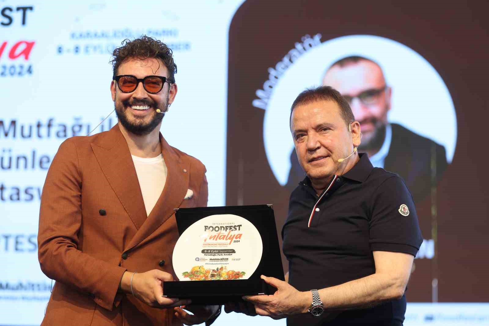 Gastronomi Festivali’ne katılan şef Somer Sivrioğlu da halkın yoğun bir ilgisiyle karşılandı. “Yerel Ürün Kullanımlı Restoranların Sürdürebilirliği” konulu söyleşiyle Antalyalıları keyifli bir sohbet gerçekleştiren Somer Sivrioğlu, Antalya’dan olmaktan her zaman büyük mutluluk duyduğunu kaydetti. Başkan Muhittin Böcek, şef Somer Sivrioğlu’na gastronomi festivaline katılımından dolayı plaket verdi.
