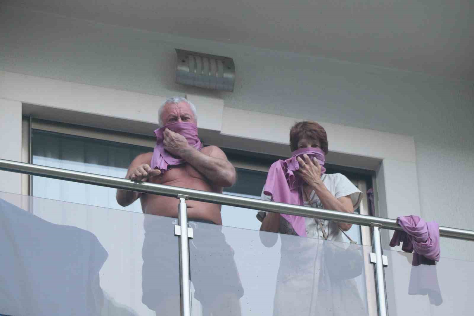 Balkonda mahsur kalanlar vinçlerle kurtarıldı