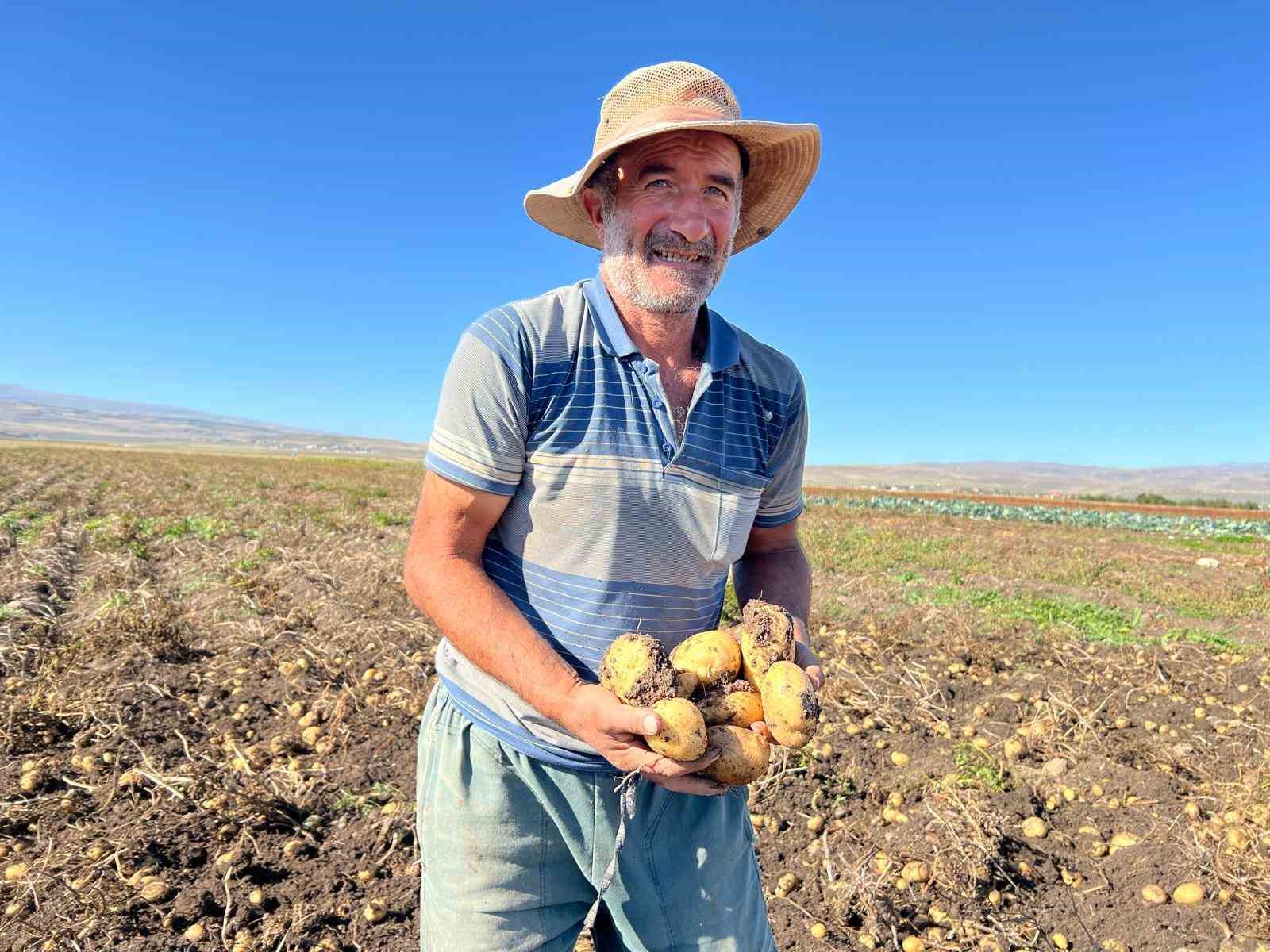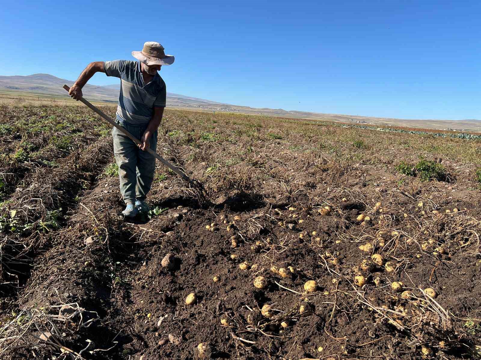 Arpaçay’da yaklaşık 30 yıldır bostancılık yapan Seyfettin Üneş, ilkbaharda ektikleri patatesi hasat ettiklerini söyledi.
