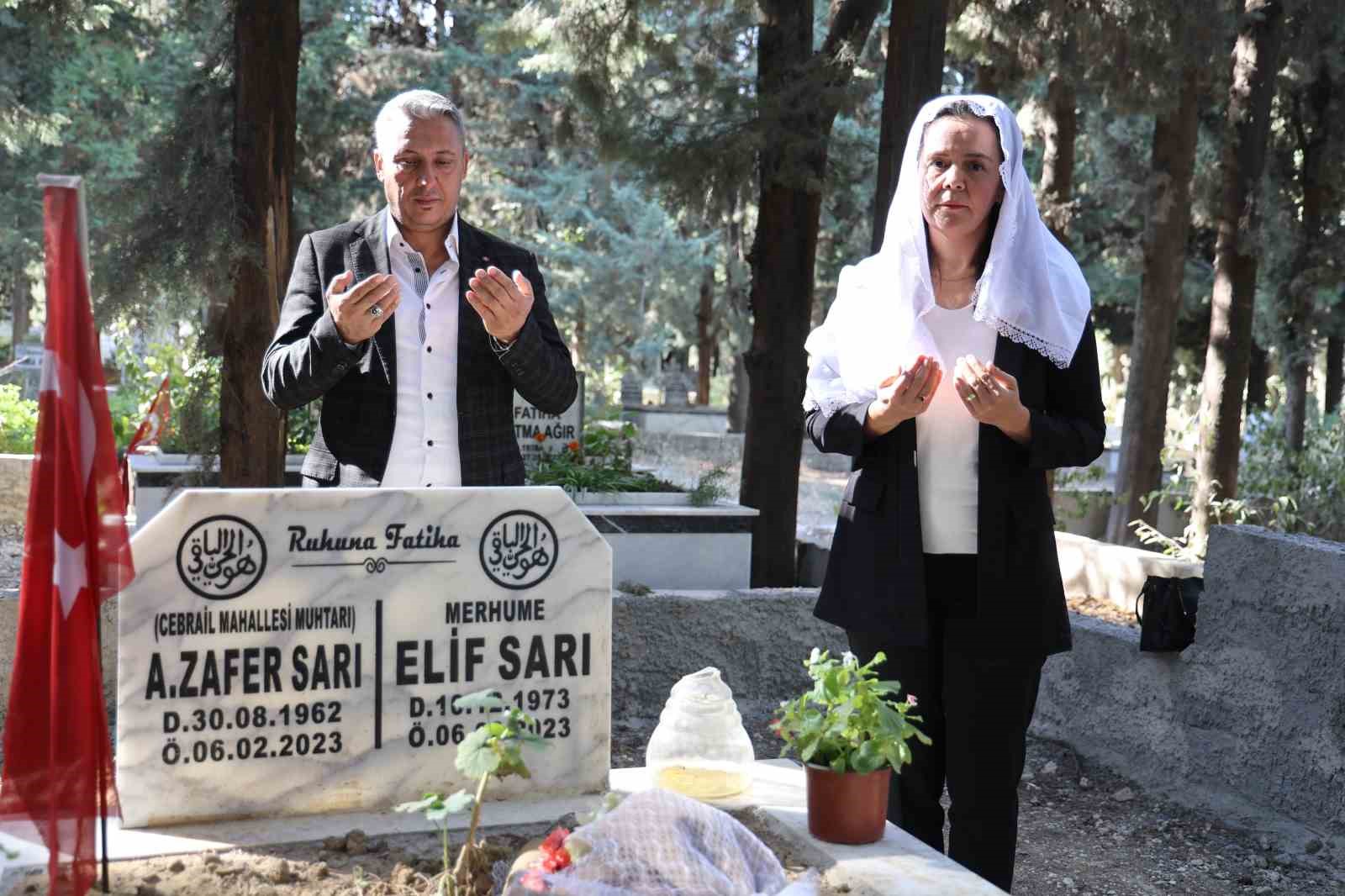 Kahramanmaraş merkezli depremlerde en çok yıkıma uğrayan Hatay’da, yaklaşık 25 bin insan hayatını kaybetmişti. Asrın felaketi olarak nitelendirilen depremde, bazı mahalleler yok olurken o mahallenin muhtarları da hayatlarını kaybetmişti. Yıkımın en çok zarar verdiği mahallelerden biri olan Cebrail Mahallesi’nin muhtar Zafer Sarı, depremde hayatını kaybetmişti. Asrın felaketinde hayatını kaybeden muhtarı, arkadaşları 19 Ekim Muhtarlar Günü’nde unutmadı ve mezarı başında andı. Antakya ilçesi Cebrail Mahallesi Muhtarı Gülay Avcıoğlu ve Emek Mahallesi Muhtarı Celal Sarı, depremde vefat muhtar Sarı’nın mezarını ziyaret etti.