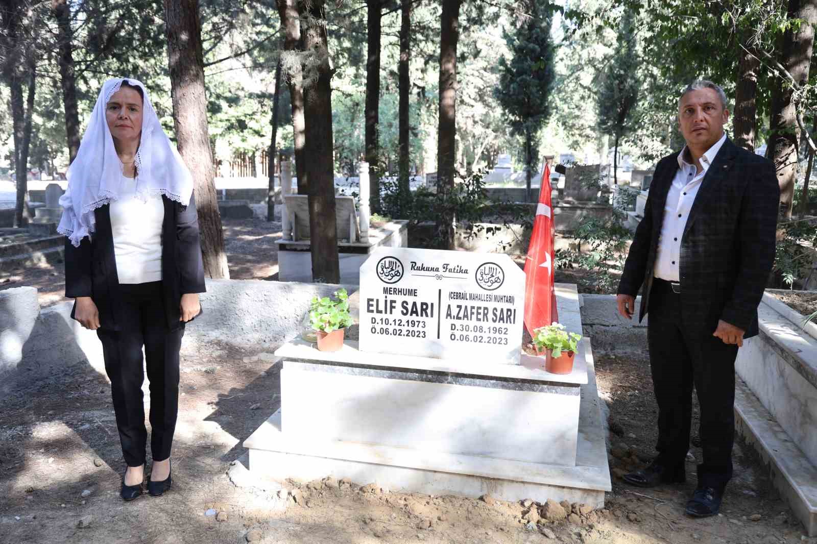 Cebrail Mahallesi Muhtarı Gülay Avcıoğlu, “Burası asri mezarlığı. 6 Şubat depreminde kaybettiğimiz ve şehit olan muhtarımızın kabrine ziyarette bulunduk. Bugün de Muhtarlar Günü olması vesilesiyle buradayız. Kendisine Allah’tan rahmet diliyorum. Yakınlarına tekrardan başsağlığı diliyorum” ifadelerini kullandı.