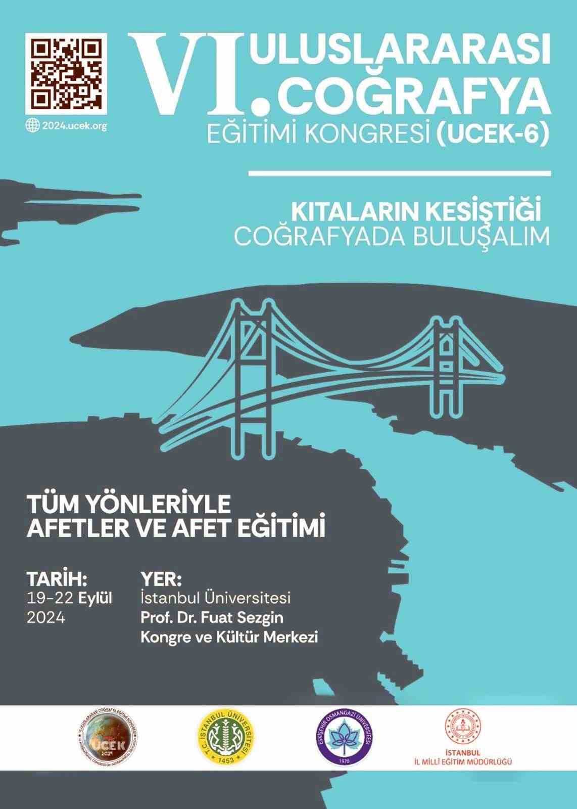6. Uluslararası Coğrafya Eğitimi Kongresi (UCEK-6) Eskişehir Osmangazi Üniversitesi Eğitim Fakültesi Türkçe ve Sosyal Bilimler Eğitimi Bölümü Başkanı Prof. Dr. Eyüp Artvinli ile İstanbul İl Milli Eğitim Müdürü Doç. Dr. Murat Mücahit Yentürk’ün Kongre Başkanlığında gerçekleşecek. Kongrede, afetler ve afet eğitimi tüm yönleriyle tartışılacak.