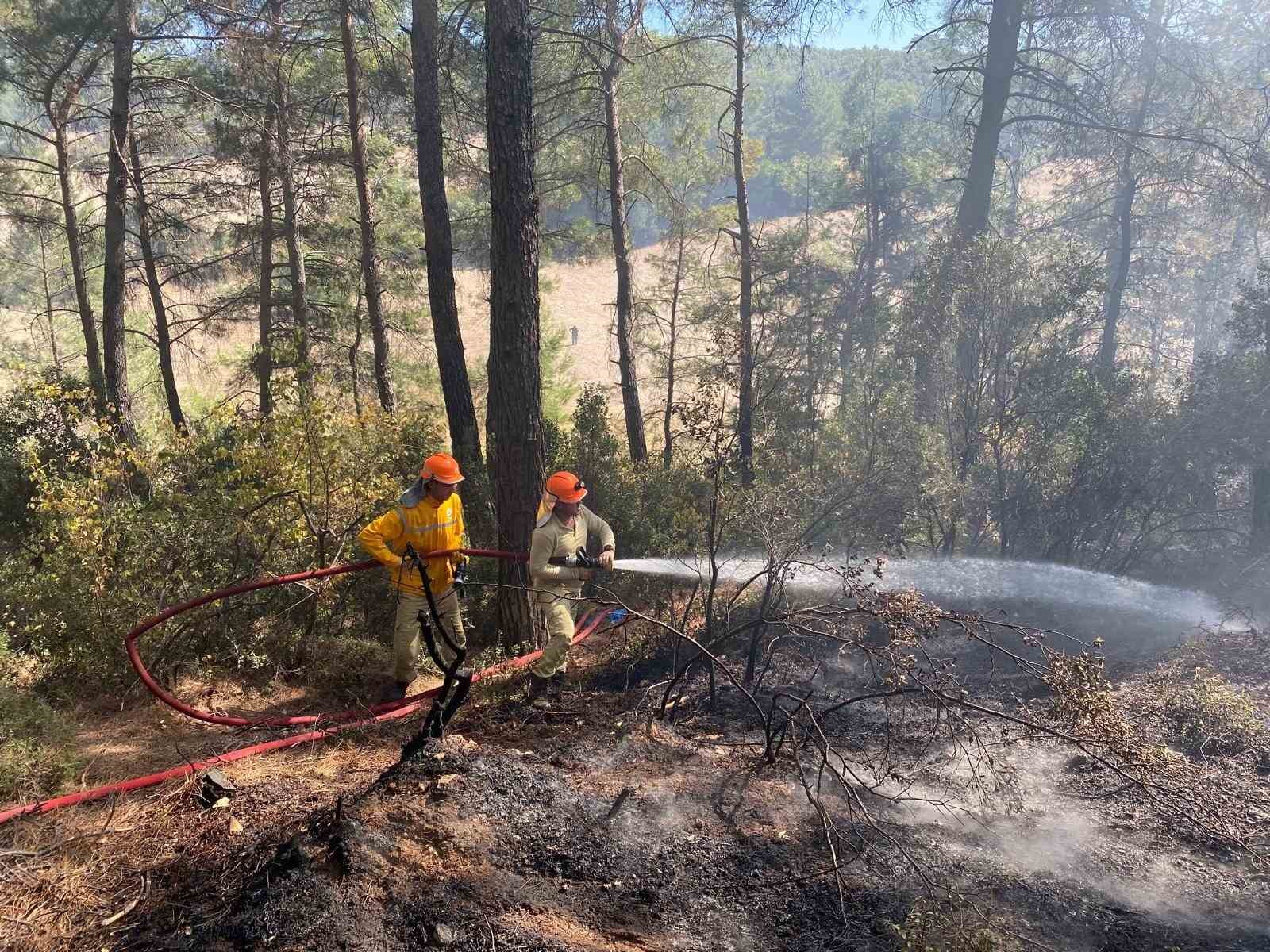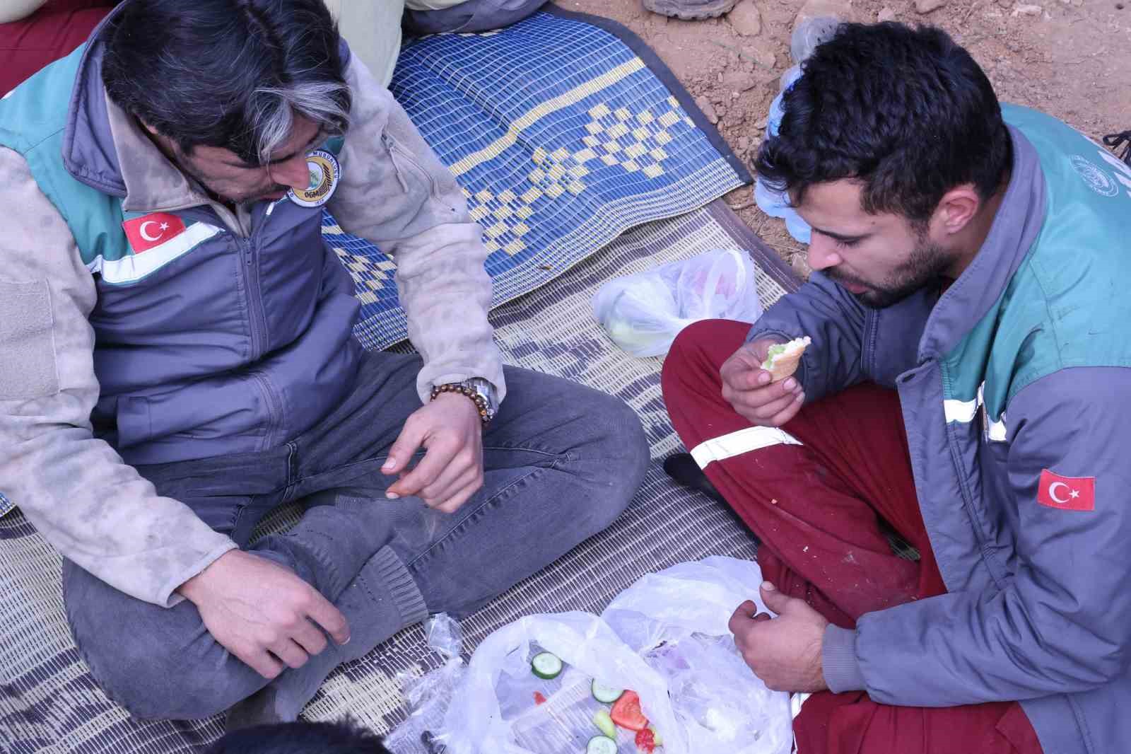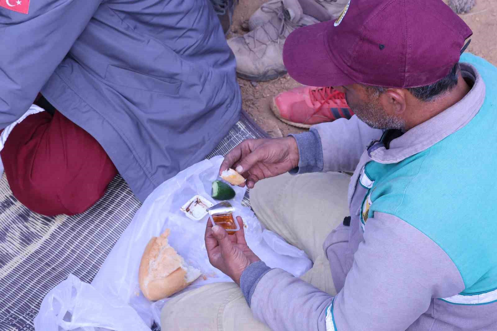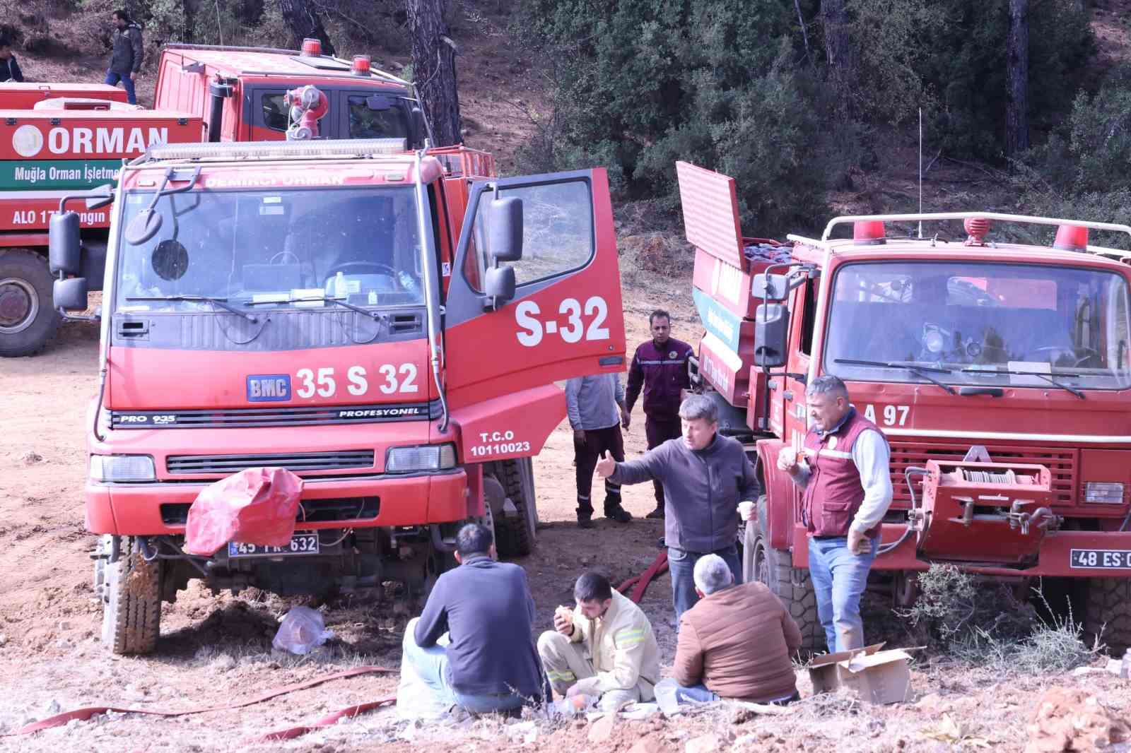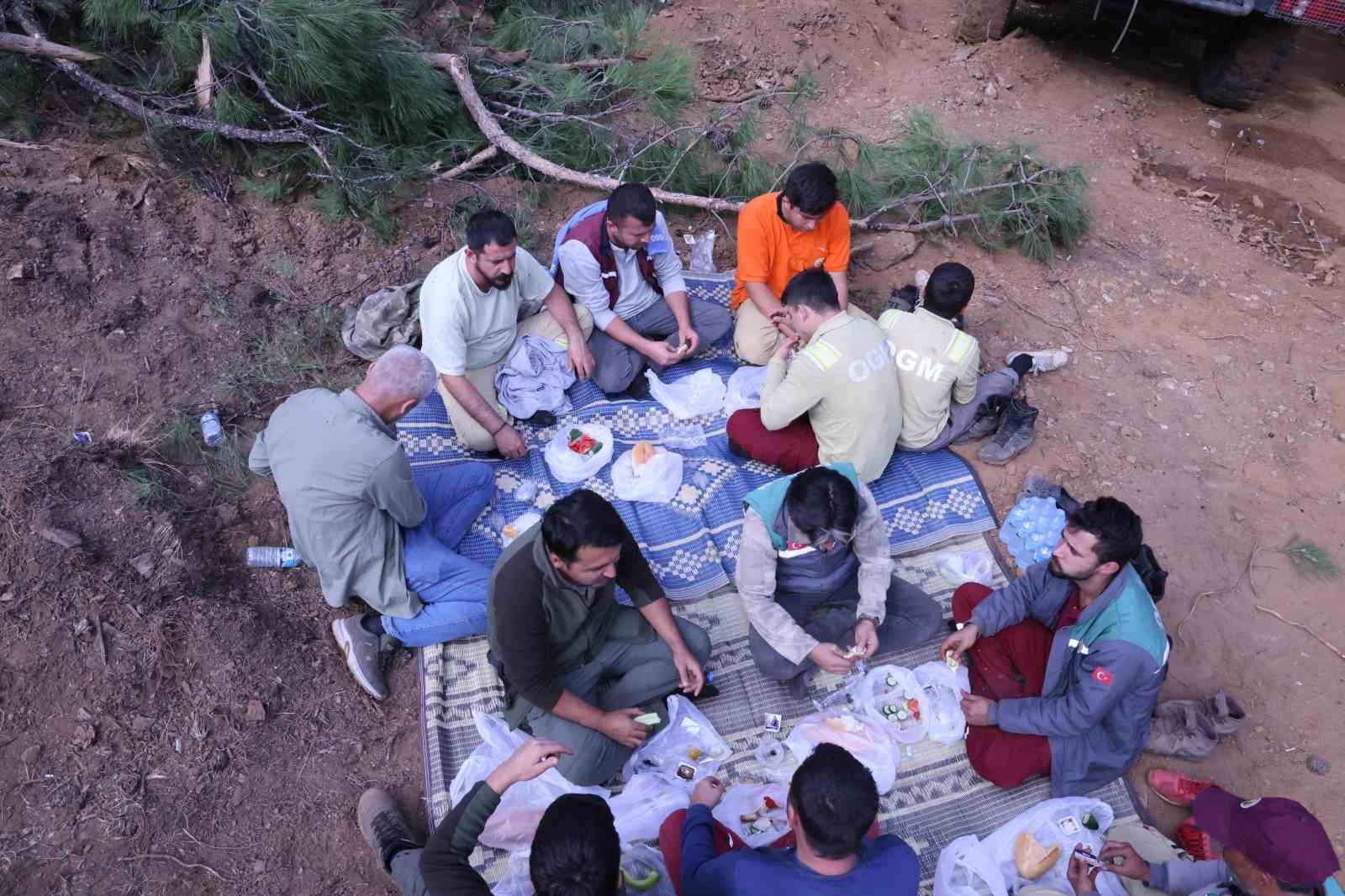 Gökova Körfezi Turnalı bölgesinde başlayan yangının söndürme çalışmaları üçüncü güne girerken, gündüz sarp kayalıklarda yer yer yükselen dumanlara sadece havadan müdahale edilebiliyor. Gökova Körfezi’ne hakim tepelerde kayalıklarda devam eden yangına gece boyunca aralıksız müdahale eden ateş savaşçıları ise alevlerin önlenmesi için yoğun çaba sarf etti. Kıran ve Sarnıç mahallerinin kesiştiği noktada etkin müdahale gerçekleştiren ekipler, alevlerin diğer bölgelere sıçramasını önleyerek, önünü kesmeyi başardı. Sabahın ilk ışıklarına kadar aralıksız mücadele eden ateş savaşçıları, günün ağarması ve havadan müdahalenin başlamasıyla sabah saatlerinde kısa bir kahvaltı molası verdi. Alevlerin önünü kestikleri bölgede mola veren ekiplerin, mütevazi kahvaltısı ise dikkat çekti. Yanlarında bulunan domates, peynir ve salatalıklardan oluşan bir kahvaltı yapan ateş savaşçılarının fedakarlıkları ise takdir topladı. Bölgede havadan ve karadan söndürme çalışmaları hız kesmeden sürüyor.