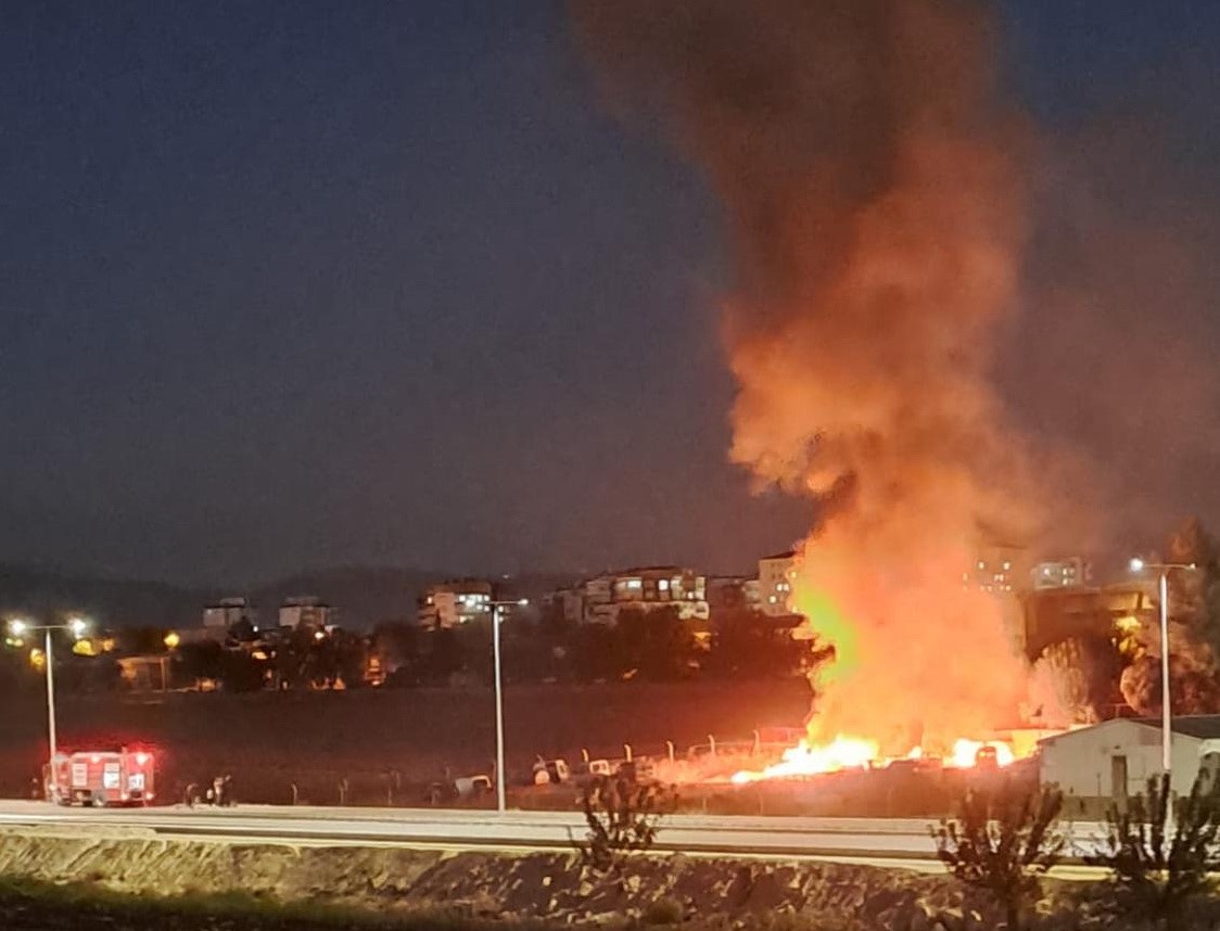 ADIYAMAN’DA, BİR İŞLETMENİN BAHÇESİNDE BULUNAN ATIK MALZEMELERİN CAYIR CAYIR YANMASI KORKUTTU.