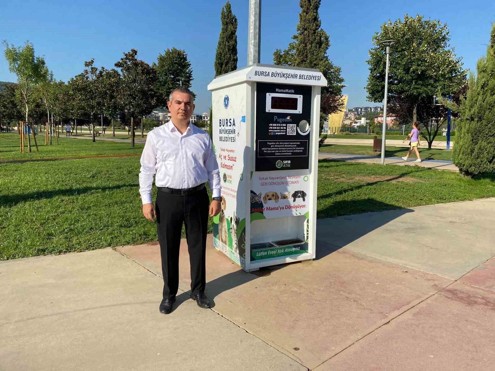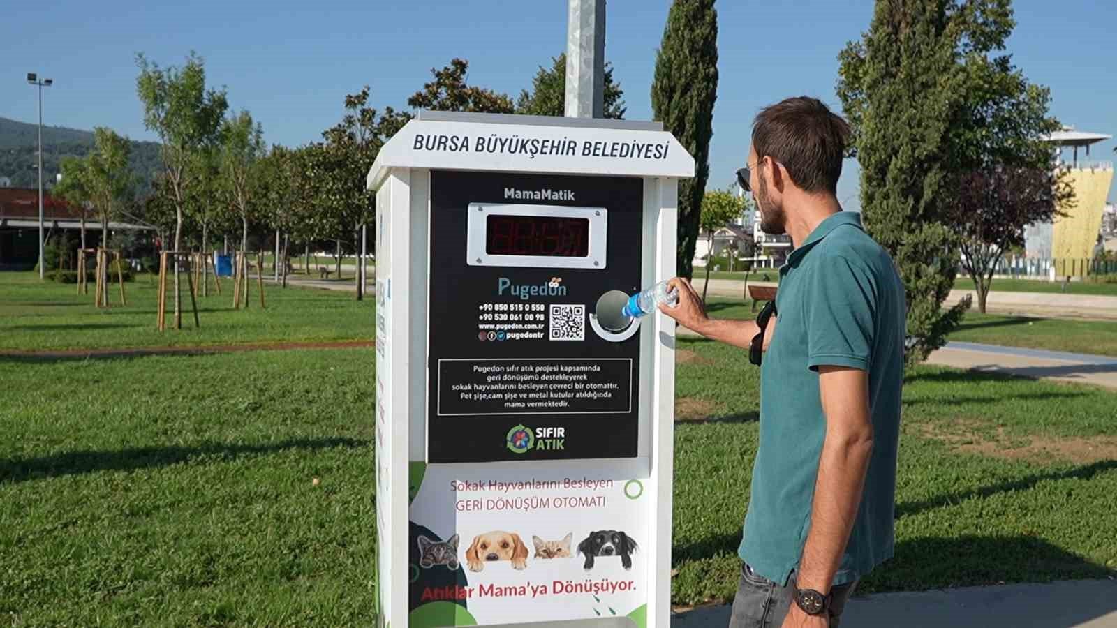 Bursa Büyükşehir Belediyesi, kentin farklı noktalarına yerleştirdiği ’mamamatik’ otomatlarıyla plastik, metal ve cam gibi atıkların hem geri dönüşümünü sağlıyor hem de can dostlar için mamaya dönüştürüyor.