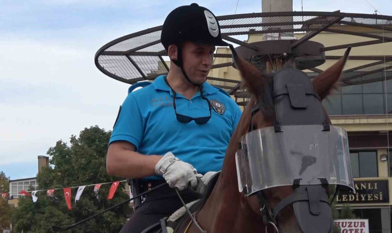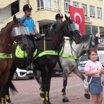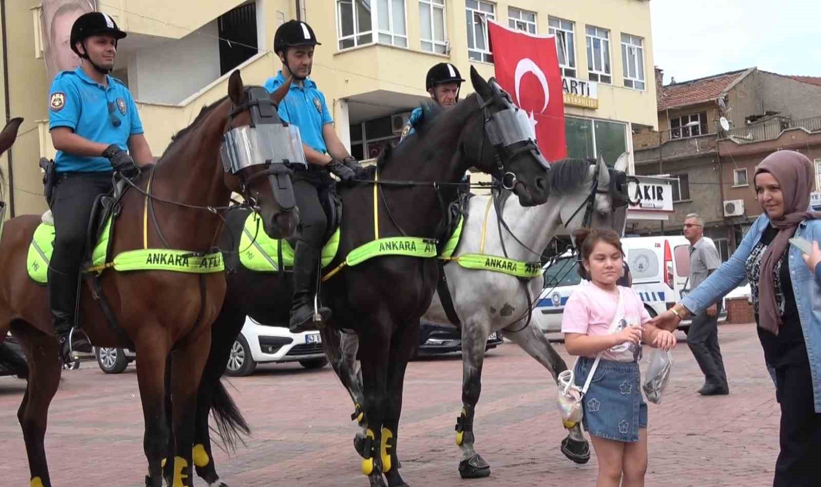 Kütahya’nın Tavşanlı ilçesinde atlarıyla devriye gezen Ankara Emniyet Müdürlüğü’nün Atlı Polis Grup Amirliği ekipleri, özellikle çocukların yoğun ilgisiyle karşılaştı.