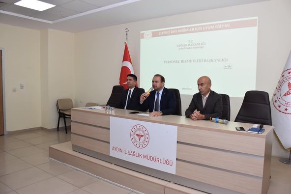 Aydın İl Sağlık Müdürlüğü’ne bağlı sağlık tesislerine 118. Devlet Hizmet Yükümlülüğü Kurası ile atanan uzman ve pratisyen tabiplere yönelik Personel Hizmetleri Başkanlığı tarafından ’uyum eğitimi’ düzenlendi.