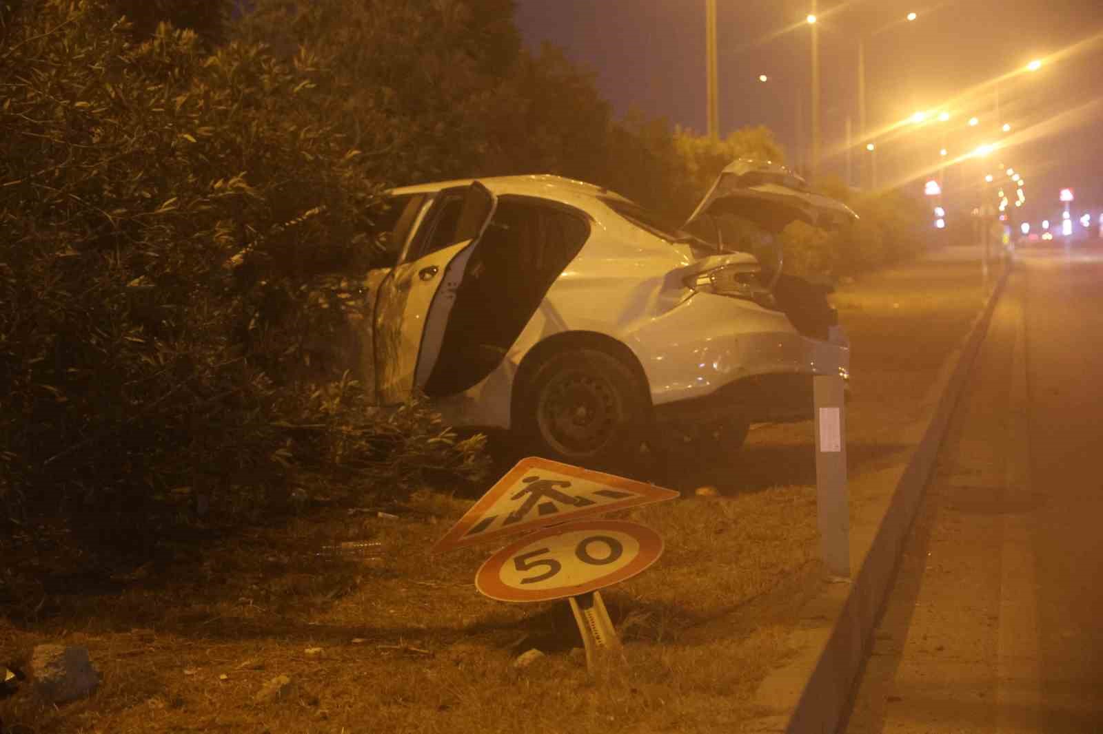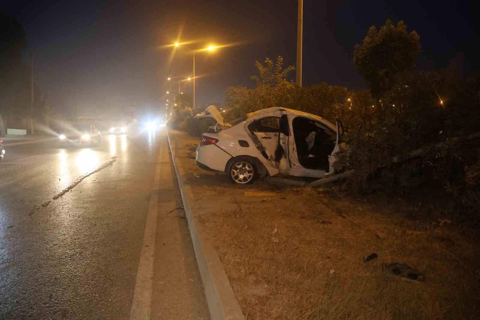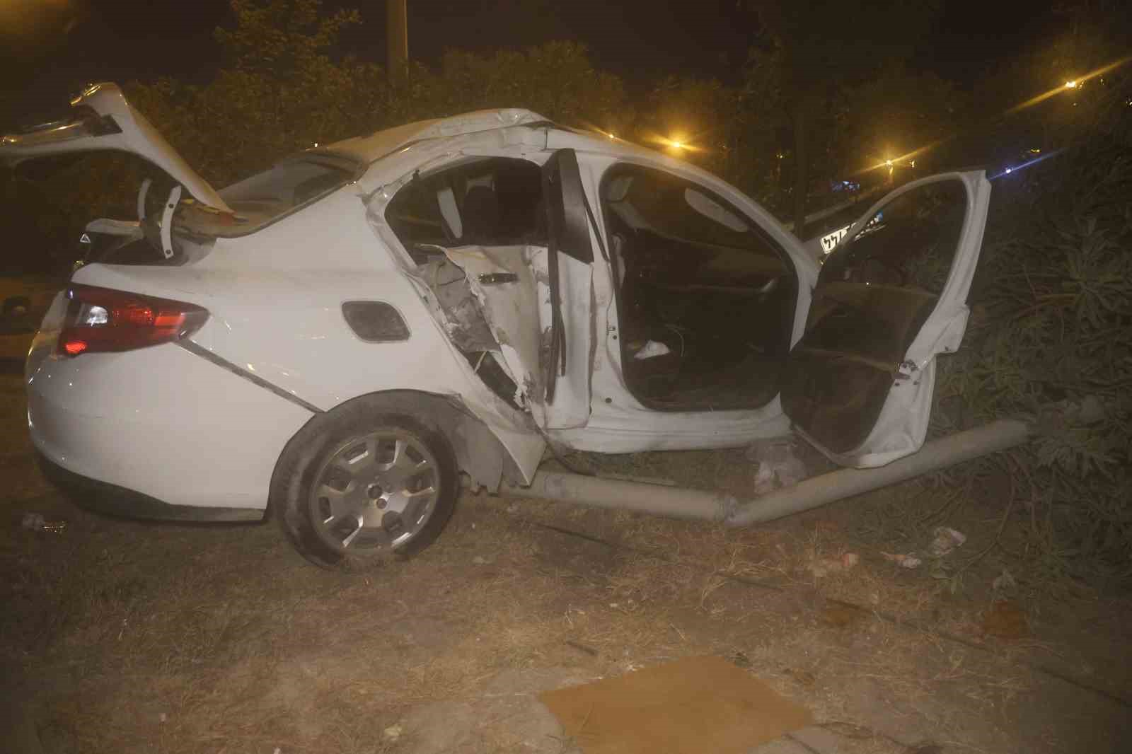 Hatay’da kontrolden çıkarak aydınlatma direğine çarpan otomobildeki 4 kişi yaralandı.