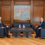 Azerbaycan’ın başkenti Bakü’ye resmi ziyaret gerçekleştiren Sırbistan Dışişleri Bakanı Marko Djuric, Azerbaycan Dışişleri Bakanı Ceyhun Bayramov ile bir araya geldi. Dışişleri bakanları ikili ve heyetler arası görüşmelerde, iki ülke arasında siyasi, ekonomik ve kültürel alanlarda stratejik ortaklık ilişkilerinin yanı sıra Azerbaycan-Ermenistan meseleleri ve işgalden kurtarılan bölgedeki son durum hakkında görüş alışverişinde bulundu. Bayramov ve Djuric görüşmenin ardından ortak basın toplantısı gerçekleştirdi.