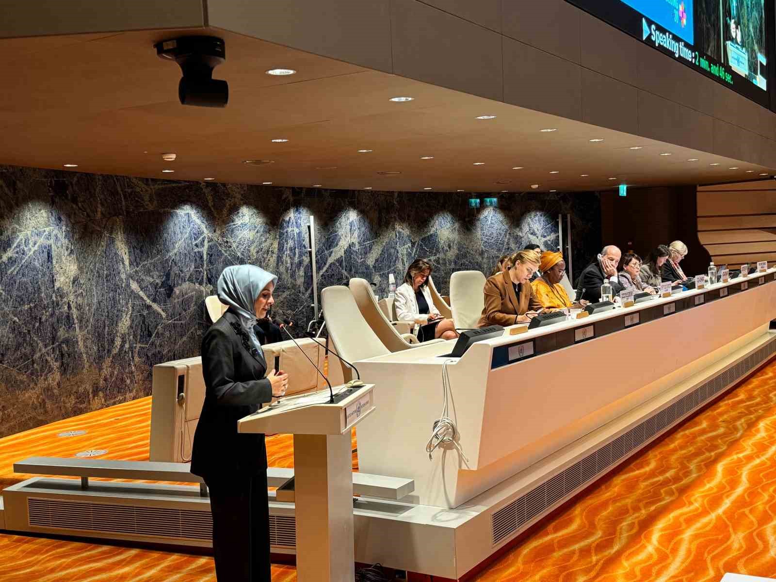 Çatışma bölgelerinde kadınların ve çocukların maruz kaldığı şiddetin göz ardı edilmemesi gerektiğini vurgulayan Göktaş, “Ne yazık ki küresel çatışmalar ve şiddet artmaya devam ederken, en büyük yükü kadınlar ve kız çocukları çekmektedir. Bu vesileyle başta Birleşmiş Milletler Güvenlik Konseyi’nin 1325 sayılı kararı ve Pekin Eylem Platformu olmak üzere uluslararası yasal çerçevenin gecikmeksizin, tam olarak uygulanması yönünde bir çağrıda bulunmak istiyorum. İsrail, Filistin topraklarını adım adım işgal ederek açık bir soykırım uygulamaktadır. Dünya, İsrail’in Gazze’den Lübnan’a uzanan ve tüm bölgeyi herkes için bir güvensizlik alanına dönüştüren saldırganlığı karşısında sessiz kalmamalıdır. Kadınlara ve kız çocuklarına yönelik her türlü ayrımcılıkla ve şiddetle mücadele etmeye kararlı olduğumuzu bir kez daha vurgulamak isterim. Pekin Deklarasyonu ve Eylem Platformu’nun 30. yıldönümünü anarken, her kadın ve kız çocuğunun şiddet ve ayrımcılıktan uzak, kendi potansiyelini gerçekleştirebileceği bir dünya taahhüdümüzü yineleyelim” dedi.