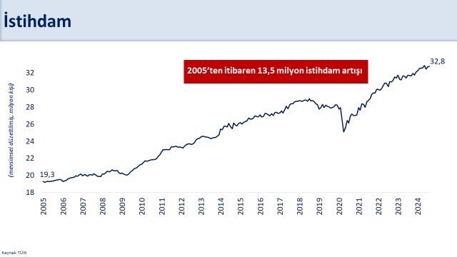 Hazine ve Maliye Bakanı Mehmet Şimşek, “İşsizlik oranı ağustosta aylık 0,3 puan düşüşle yüzde 8,5 oldu. 2005 yılından bu yana sağladığımız istihdam artışı 13,5 milyona ulaştı” dedi.