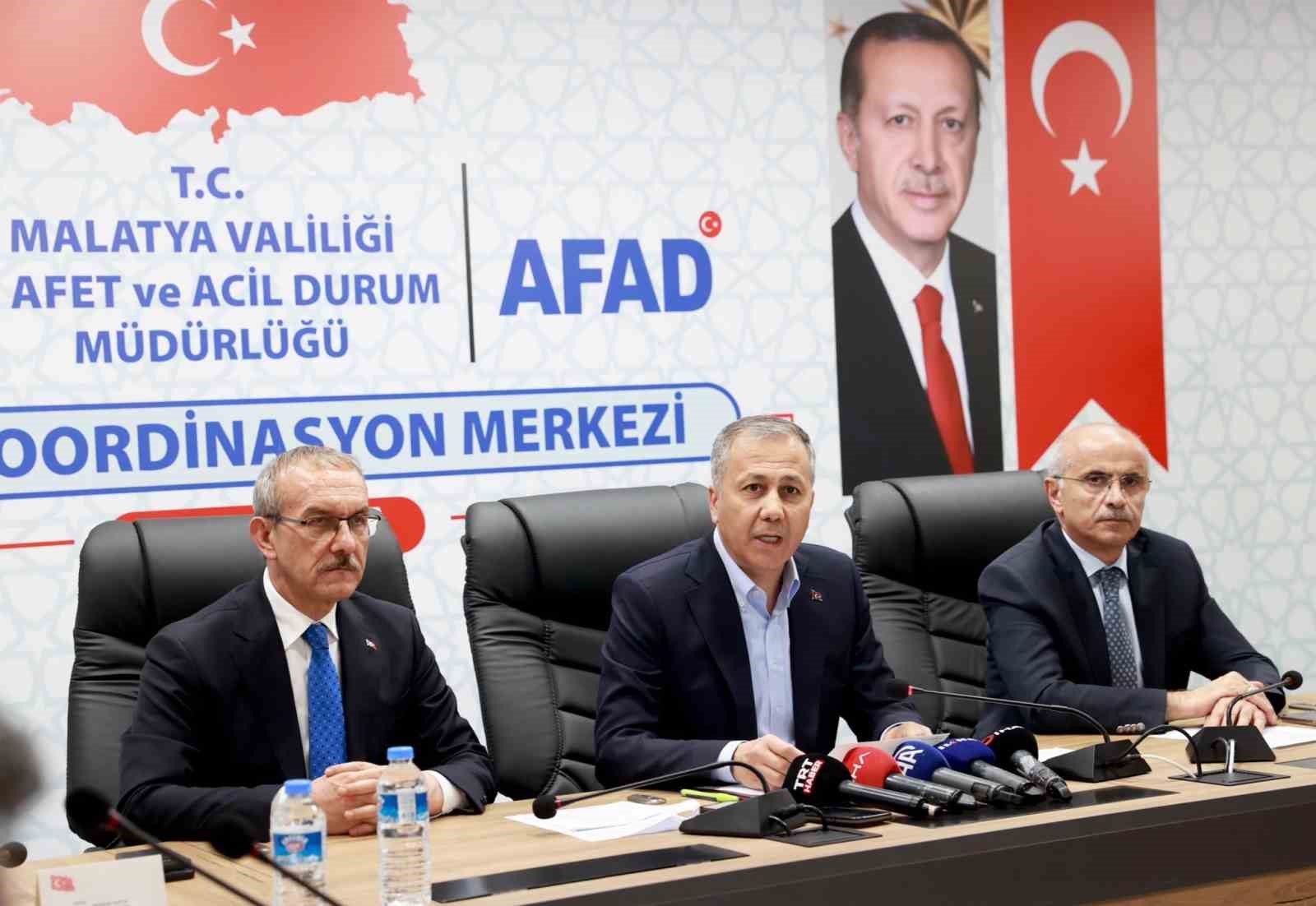 İçişleri Bakanı Ali Yerlikaya, Malatya’da meydana gelen 5.9 büyüklüğündeki deprem sonrası Malatya AFAD Koordinasyon Merkezi’nde basın açıklaması gerçekleştirdi. Bakan Yerlikaya, basın açıklaması sonrası sosyal medya hesabından yaptığı paylaşımda, “Malatya’da meydana gelen 5.9 büyüklüğündeki deprem sonrası Malatya AFAD Koordinasyon Merkezi’nde basın açıklamamızı gerçekleştirdik. Depremin hemen ardından Cumhurbaşkanımız Sayın Recep Tayyip Erdoğan’ı gelişmelerden anbean bilgilendirdik. Valilerimiz, AFAD teşkilatımız, jandarmamız, güvenlik birimlerimiz ve belediyelerimizce ilgili yerleşim yerlerinde köy köy, mahalle mahalle başlatılan saha taramasında sona gelindi. AFAD’dan 55 araç ve 210 personelimizle, jandarma ve emniyet teşkilatlarımızdan 3 İHA ile 1 insanlı keşif uçağımız çalışmalarına devam ediyor. Şu ana kadar 112 Çağrı Merkezimize bin 112 ihbar geldi. Bu ihbarların 963’ü bilgi, 149’u da yardım amaçlıdır. Depremden etkilenen vatandaşlarımıza bir kez daha geçmiş olsun dileklerimi sunuyorum. Allah ülkemizi ve milletimizi her türlü afetten korusun” açıklamasında bulundu.