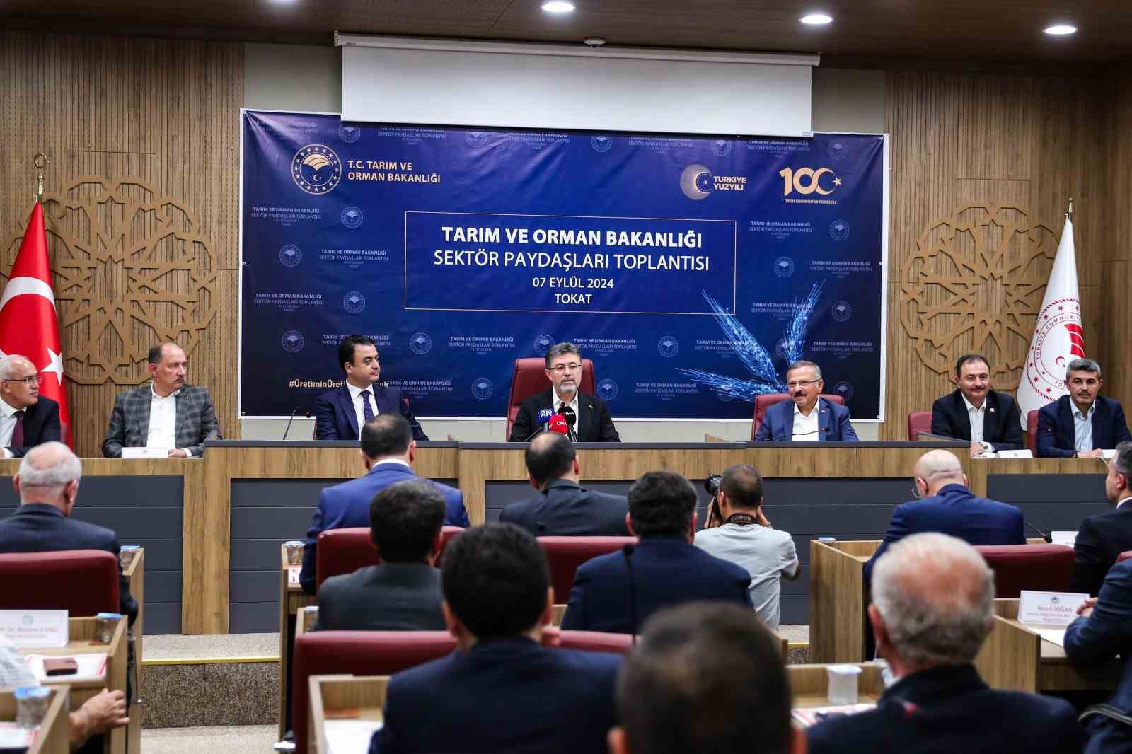 Türkiye’nin önemli tarım ve hayvancılık merkezlerinden biri olan Tokat’a gelen Tarım ve Orman Bakanı İbrahim Yumaklı, Erbaa ilçesi ziyaretinin ardından il merkezine geçerek Tokat Valisi Abdullah Köklü’yü makamında ziyaret etti. Ziyaretin ardından İl Genel Meclisi toplantı salonunda sektör temsilcileri ile bir araya geldi. Burada konuşan Bakan Yumaklı, işlenmeyen tarım arazilerinin tekrar tarıma ve ekonomiye kazandırılması konusu üzerine yanlış bilgilendirmelerin oluğunu ifade ederek, “Buradan bir kez daha sizlerin vasıtasıyla açıklık getirelim. Bu başlıkta, mülkiyet sahiplerinin mülkiyetiyle ilgili herhangi bir tasarrufta bulunmamız söz konusu değildir. Devlet olarak istediğimiz şey, bu arazilerin ekilmesi ve tarımsal üretime dahil edilmesidir. Bu süreçte, coğrafi bilgi sistemleri de dahil olmak üzere teknolojiyi tamamen kullanıyoruz” dedi.