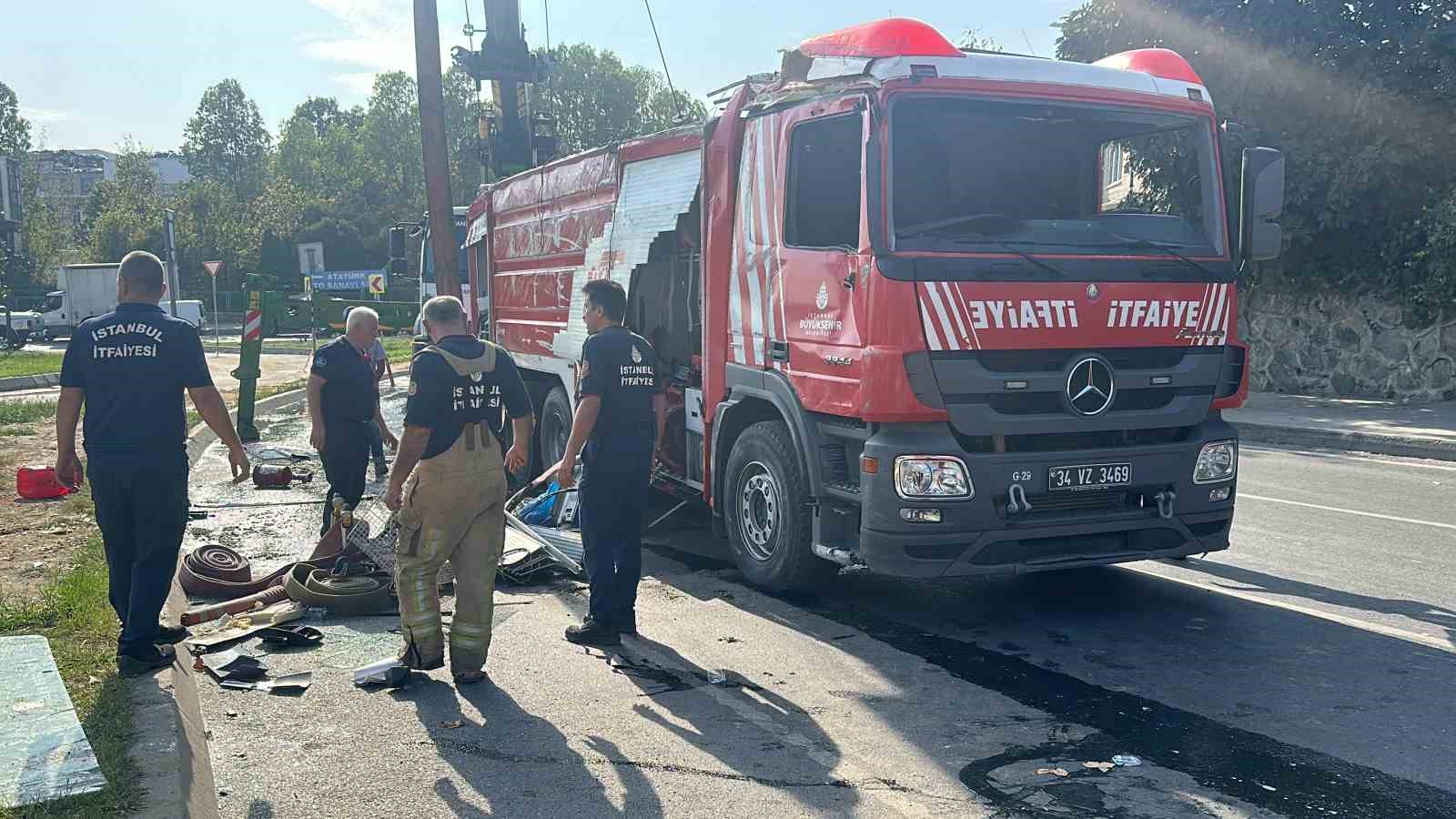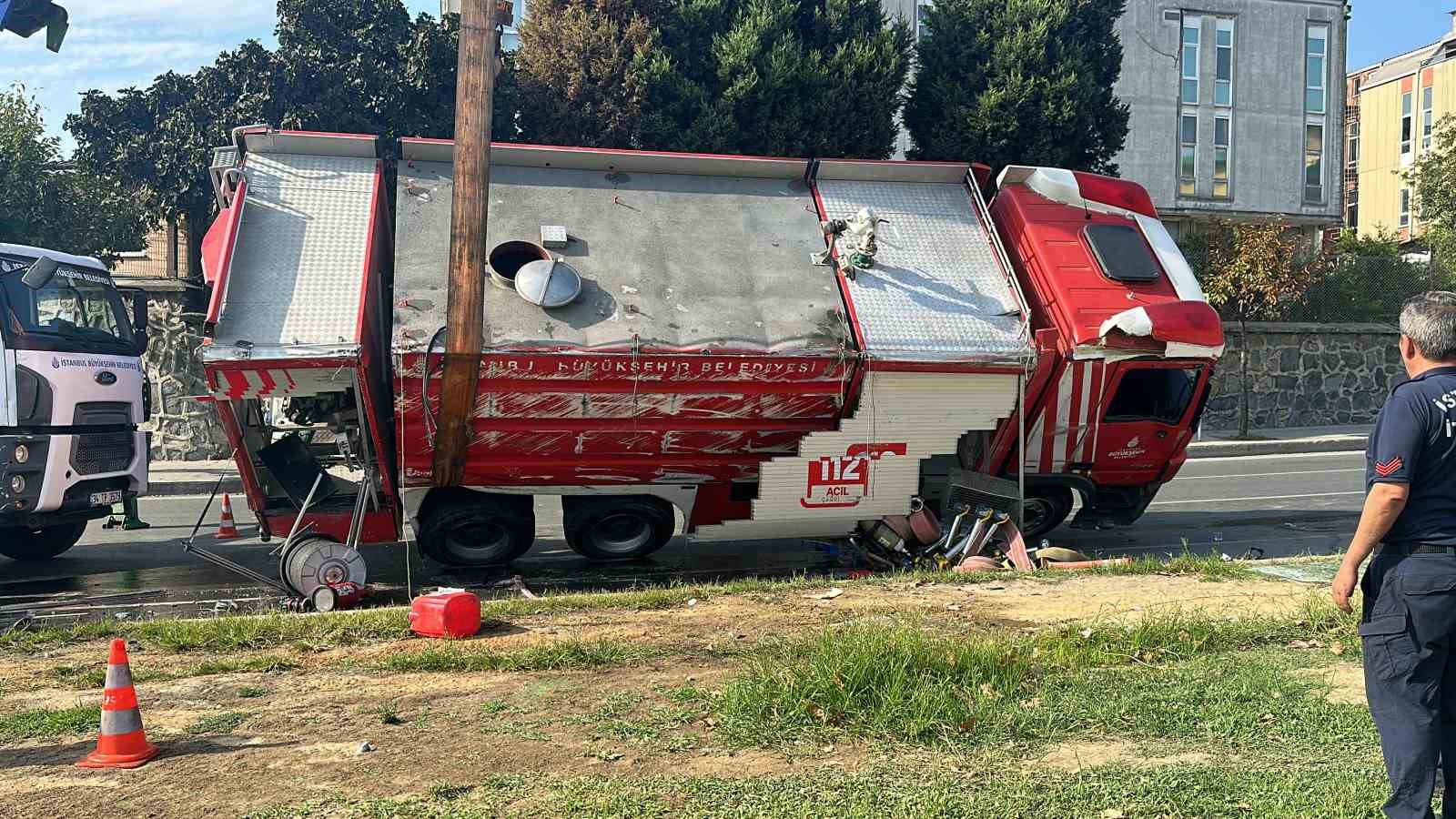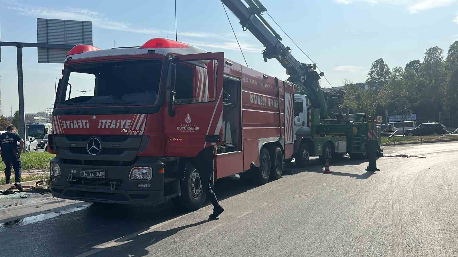 İstanbul’un Başakşehir ilçesinde yangın ihbarına giden itfaiye aracı kavşakta dönüşü alamayarak yan yattı. Kaza sonrasında aracın içinden itfaiye ekibi ön camı kırarak çıktı.