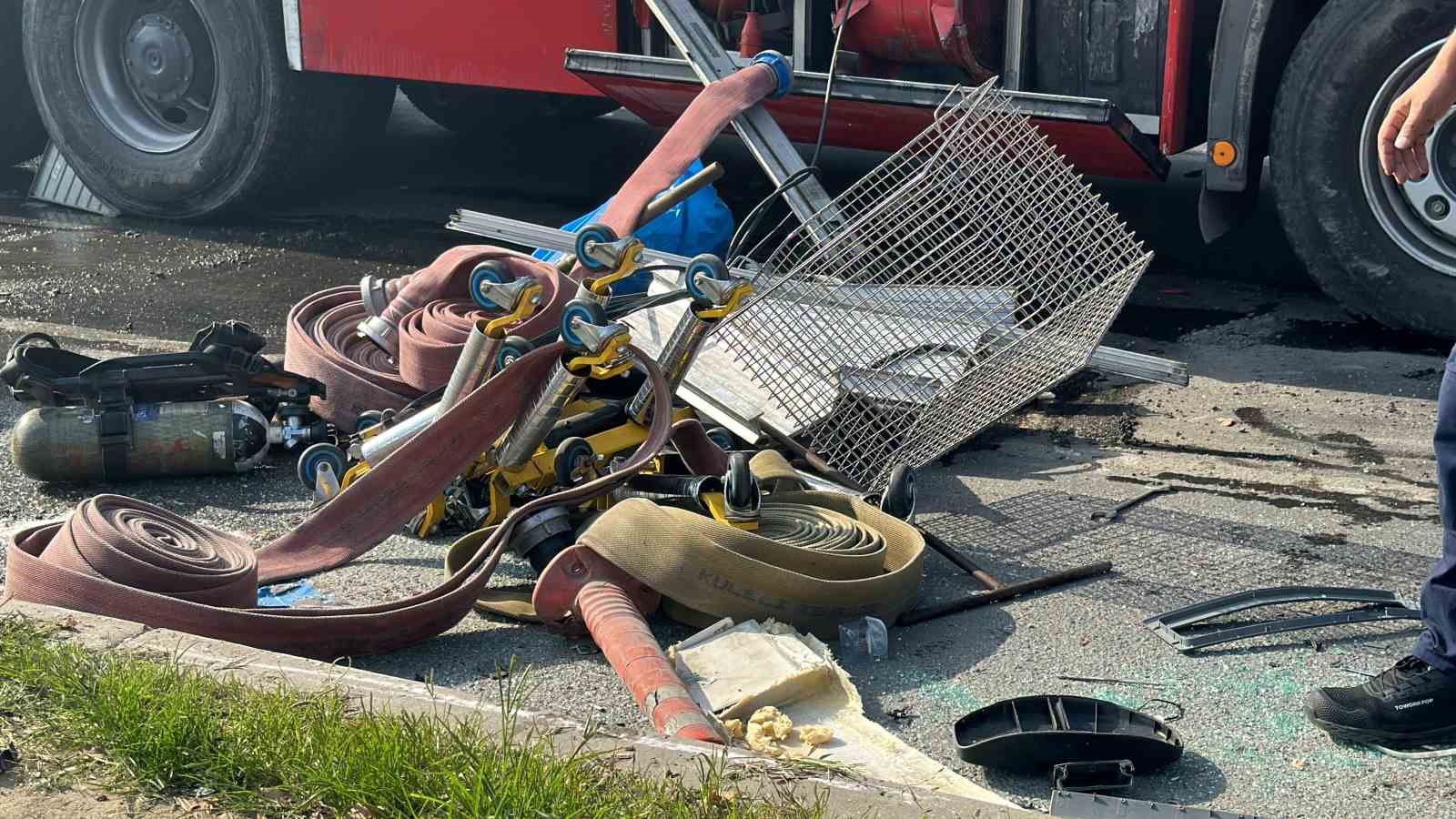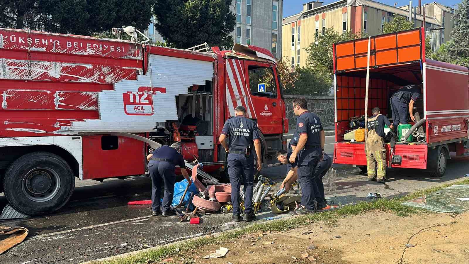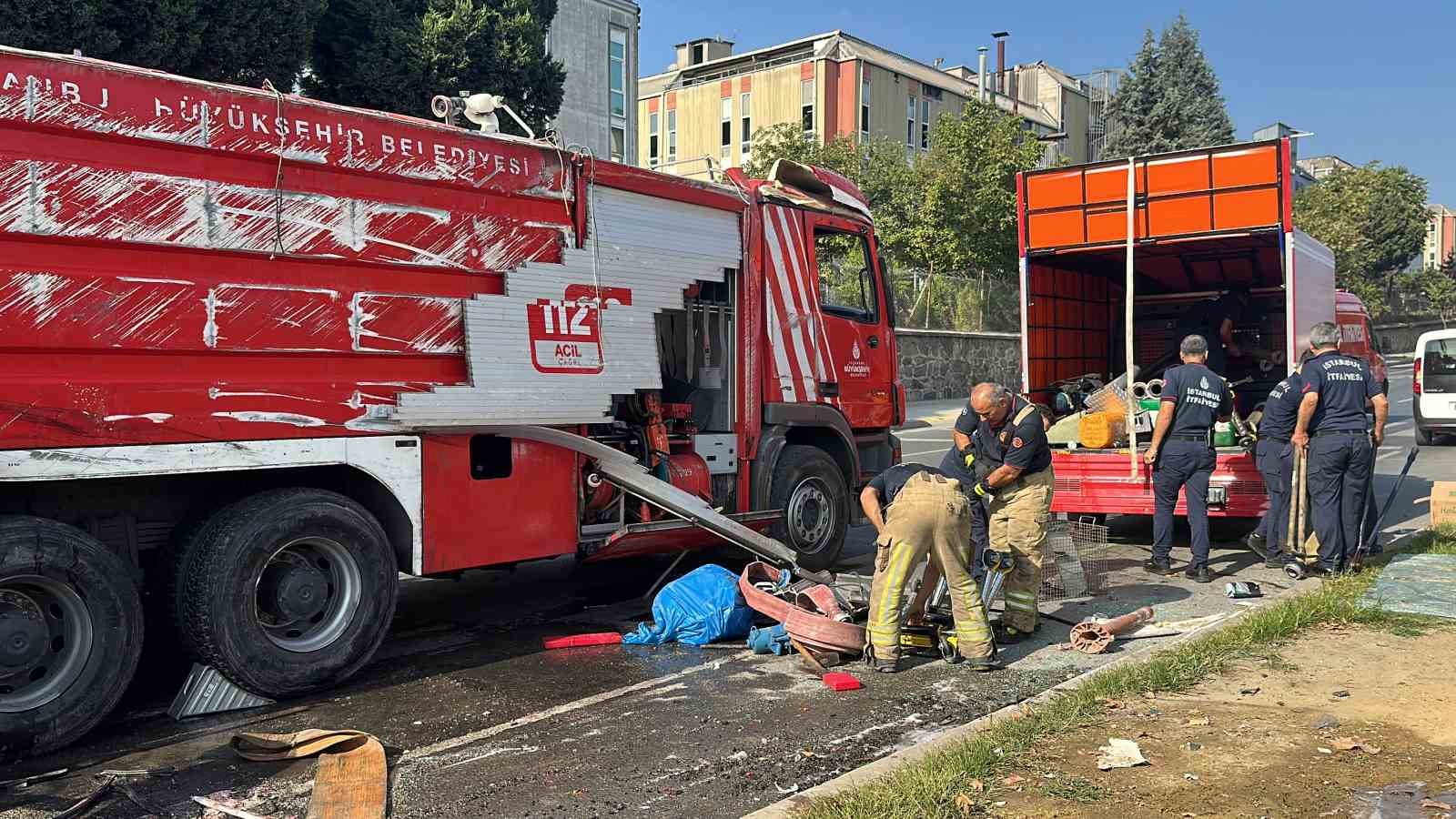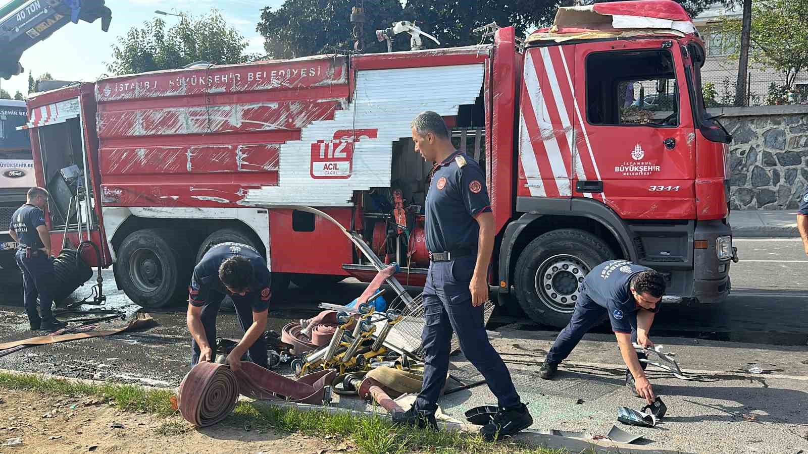 İstanbul’un Başakşehir ilçesinde yangın ihbarına giden itfaiye aracı kavşakta dönüşü alamayarak yan yattı. Kaza sonrasında aracın içinden itfaiye ekibi ön camı kırarak çıktı.