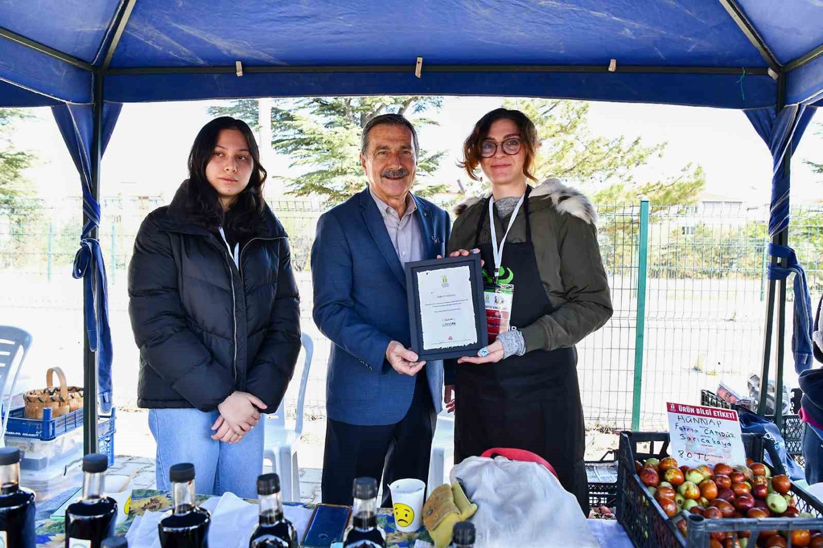 Tepebaşı Belediye Başkanı Dt. Ahmet Ataç, 15 Ekim Dünya Kadın Çiftçiler Günü dolayısıyla Tepebaşı Belediyesi Kadın Üretici Ürün Satış Noktasını ziyaret etti. Uluönder Mahallesi Fevzi Çakmak Caddesi’nde kırsal mahalle sakini kadın üreticiler ile bir araya gelen Başkan Ataç, kadınları üretime verdikleri katkılardan dolayı kutlayarak plaket takdim etti. Üretici kadınların yanı sıra alanda alışveriş yapan vatandaşlar da Başkan Ataç’a üretime ve kadınlara sağladığı desteklerden ötürü teşekkür etti.