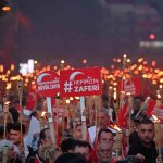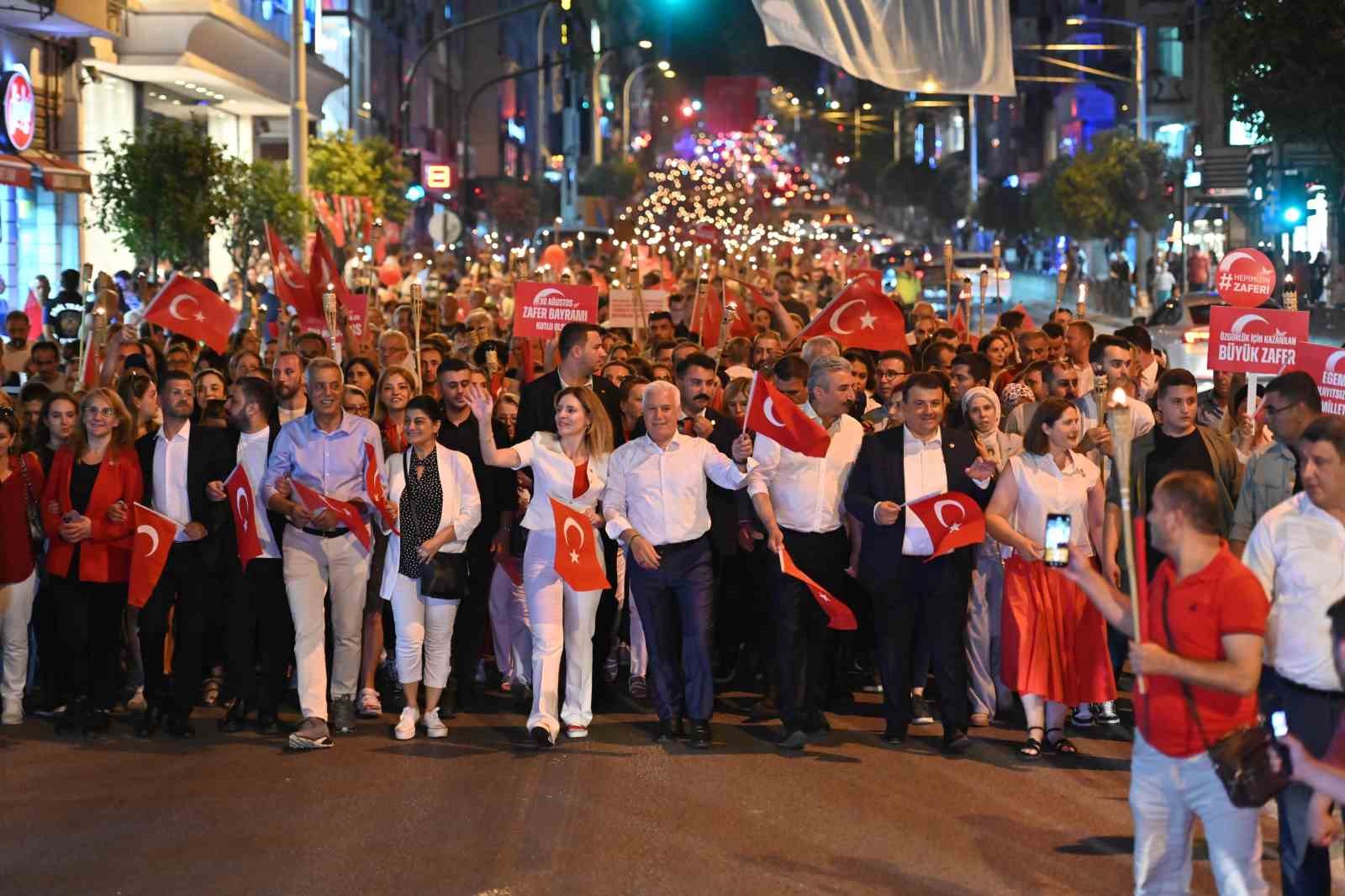 30 Ağustos Zafer Bayramı’nın 102’inci yıldönümü, tüm yurtta olduğu gibi Bursa’da da büyük bir coşkuyla kutlandı. Gündüz etkinlerinin ardından binlerce Bursalı, Bursa Büyükşehir Belediyesi tarafından ‘Hepimizin Zaferi’ sloganıyla düzenlenen fener alayı yürüyüşüne katılmak üzere Tarihi Belediye Binası önünde toplandı. Yürüyüşe Bursa Büyükşehir Belediye Başkanı Mustafa Bozbey ve eşi Seden Bozbey’in yanı sıra Bursa Milletvekilleri Hasan Öztürk, Kayıhan Pala, Orhan Sarıbal, CHP İl Başkanı Nihat Yeşiltaş, Bursa Kent Konseyi Başkanı Prof. Dr. Ertuğrul Aksoy, ilçe belediye başkanları, Büyükşehir Belediyesi genel sekreter yardımcıları, daire başkanları ve bürokratları da katıldı. Atatürk Caddesi’ni baştan sona dolduran binlerce kişi, ellerindeki fenerler ve Türk bayrakları ile 30 Ağustos Zafer Bayramı coşkusunu yaşamak için Altıparmak Atatürk Stadyumu alanına kadar marşlar eşliğinde yürüdü. Ellerindeki fener ve pankartlarla omuz omuza yürüyen binlerce kişi, Bursa’da uzun yıllardır görülmemiş bir manzaraya imza attı.