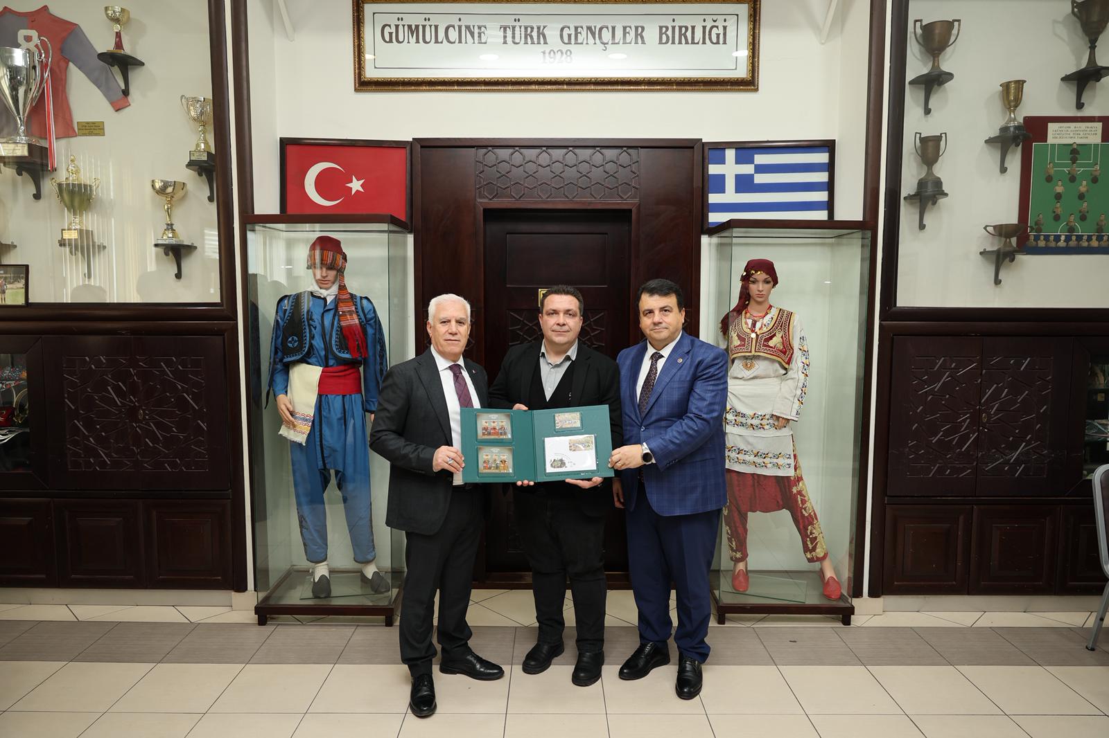 Ziyaretlerde Bursa’nın fethinin 700. Yılı anısına özel olarak hazırlanan kartpostallar ve pullardan hediye eden Başkan Mustafa Bozbey, Batı Trakya’daki soydaşların dayanışma içinde olmasının memnuniyet verici olduğunu dile getirdi.