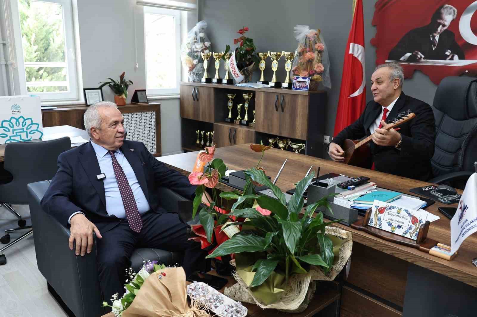 Ziyaretleri esnasında okul yöneticileriyle de görüşen Başkan Şadi Özdemir, eğitime verilebilecek destekler konusunda fikir alışverişinde bulundu. İsmail Kadriye Solakoğulları Ortaokulu ziyaretinde Başkan Şadi Özdemir bir de sürprizle karşılaştı. İsmail Kadriye Solakoğulları Ortaokulu Müdürü Köksal Bülbül, Başkan Şadi Özdemir’e ziyaret hatırasına saz çaldı.