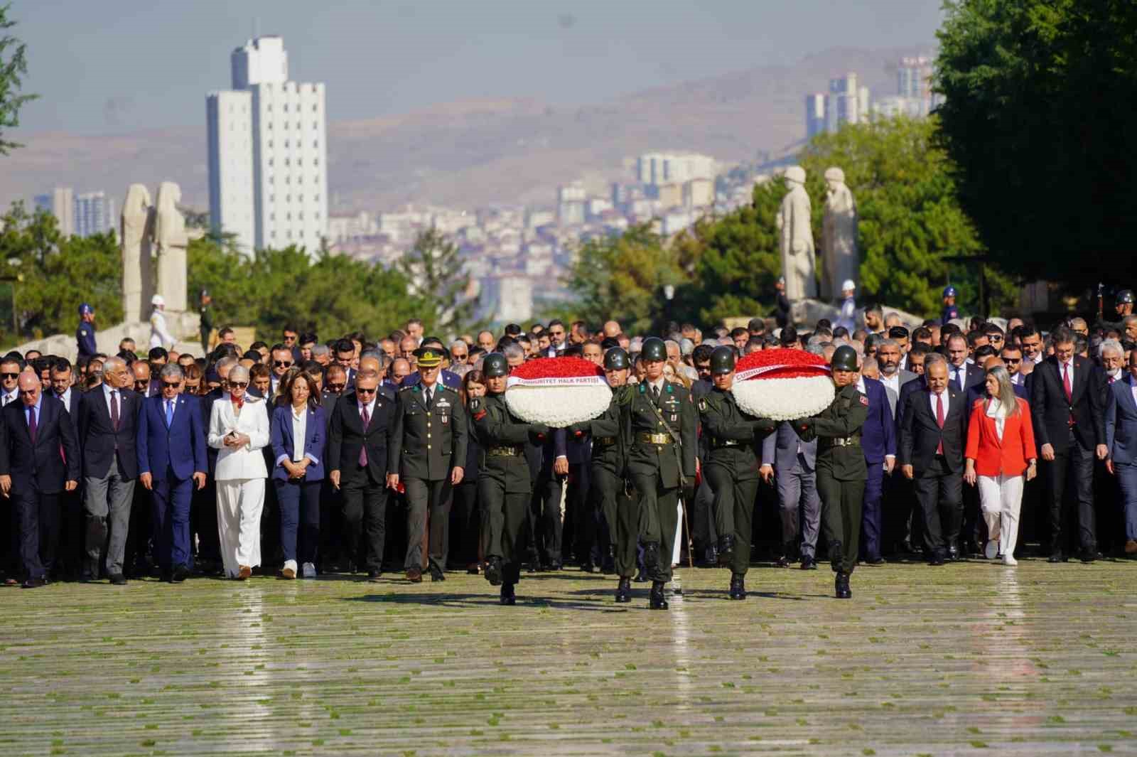 Milletvekilleri, Belediye Başkanları ve partililerin de olduğu heyetin Anıtkabir ziyaretiyle başlayan program kapsamında Genel Başkan Özgür Özel, ve beraberindeki heyet, Aslanlı Yol’dan yürüyerek tören alanına geldi. Atatürk’ün mozolesine çelenk konulması, saygı duruşunda bulunup İstiklal Marşı’nın okunmasıyla başlayan programda Özel ve beraberindeki heyet daha sonra Misak-ı Milli Kulesi’ne geçti.