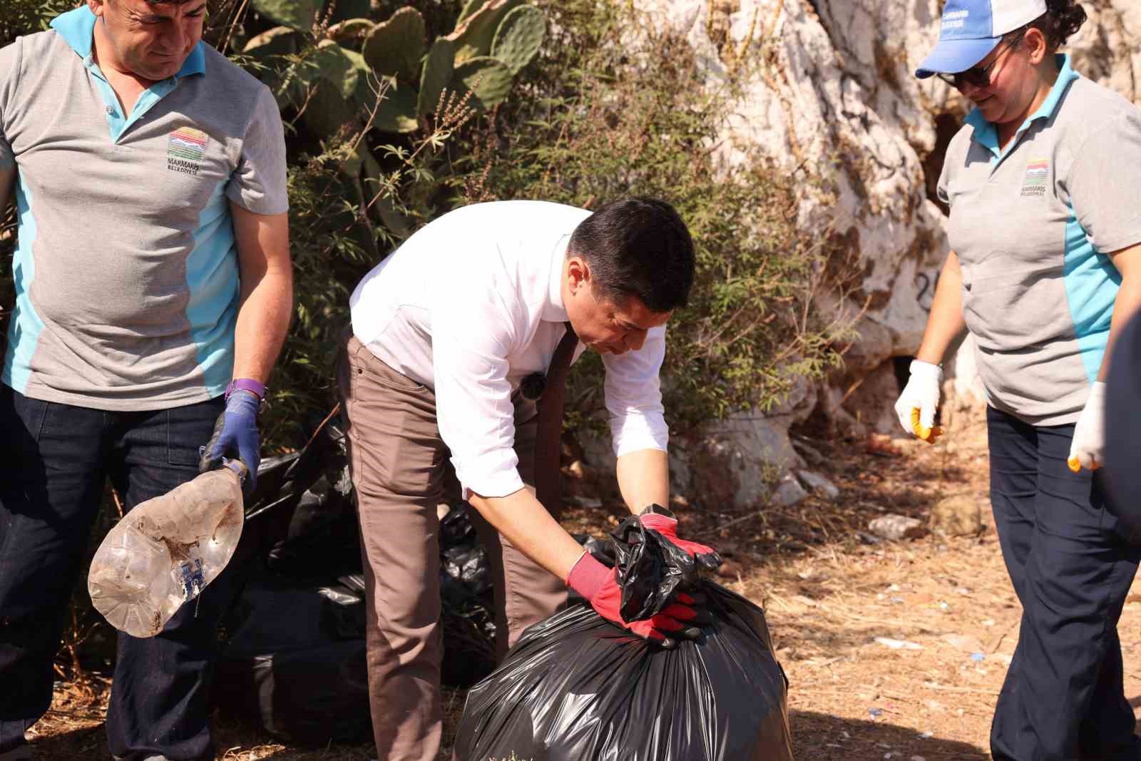 Marmaris Belediye Başkanı Acar Ünlü, temizlik personeliyle birlikte Yalancıboğaz mevkiinde mıntıka temizliği gerçekleştirdi. Tatilcilerin ve piknikseverlerin yoğun olarak geldiği yerlerden biri olan Yalancıboğaz’daki temizlik çalışmasında onlarca torba çöp toplandı. Çöp toplama sırasında gündeme dair değerlendirmelerde de bulunan Acar Ünlü, son dönemde hayvan bakımevlerinde yaşanan ve öldürülen köpeklerin çöp poşetlerine konulduğu eziyetlere atıfta bulunarak “Çöp poşetine yalnızca çöplerimizi atıyoruz. Bir can bu çöp poşetine çok ağır gelir” diyerek duyarlılığını dile getirdi.