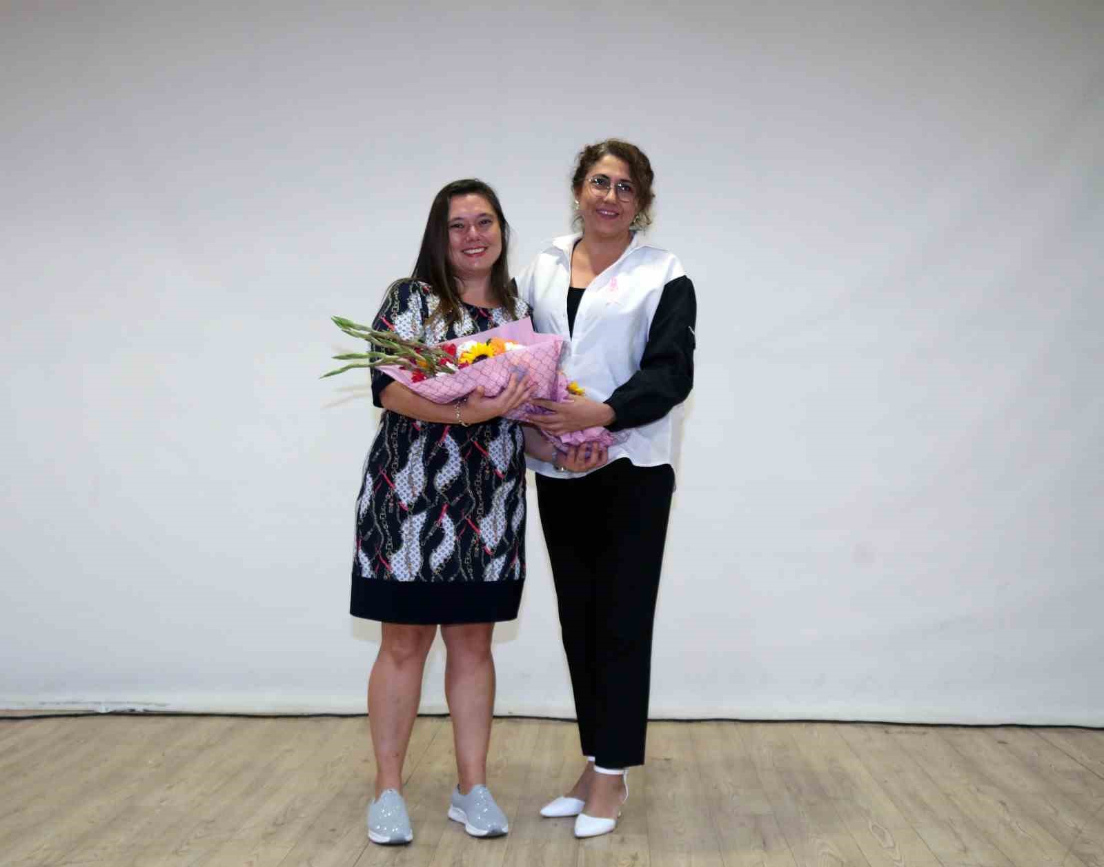 Seminerde, Bayraklı Belediyesi Sağlık İşleri Müdürlüğü’nde görev yapan Dr. Sibel Akay Tıkıroğlu, meme kanserinde erken teşhisin önemini anlatarak, hayat kurtardığını vurguladı. Modern tedavi yöntemleri ve tarama süreçlerinin önemini katılımcılarla paylaşan Tıkıroğlu, kadınlara düzenli kontrollerin aksatılmaması gerektiğini hatırlattı. Ayrıca, meme kanserinin erken tanı ile tedavi başarısının büyük ölçüde arttığı vurgulandı. Seminer sonunda, katılımcılara verilen numaralı biletlerle çekiliş yapıldı. Çekilişte 5 şanslı kişiye, meme kanserine dikkat çekmek amacıyla hayırsever Aysun Tokbaş gönüllü tarafından pembe kurdele hayat sigortası poliçesi hediye edilerek farkındalık çalışmasına anlamlı bir katkı sağlandı.