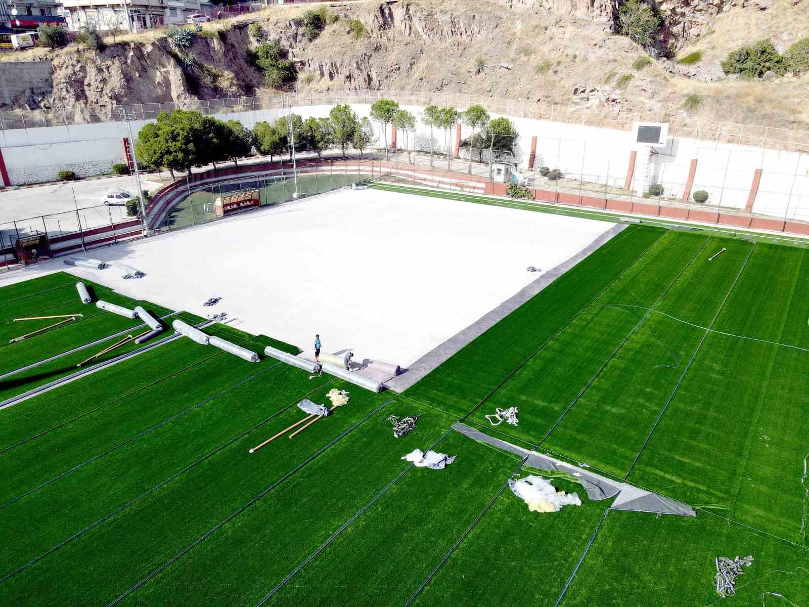 Bayraklı’nın önemli spor merkezlerinden biri olan Şehit Ümit Boz Spor Tesisi, kapsamlı bir bakım onarım sürecine girdi. Amatör futbol kulüpleri ve altyapı takımlarının yoğun olarak kullandığı 6 bin metrekarelik saha, bu kapsamda zemininden tribününe kadar baştan sona yenileniyor.
