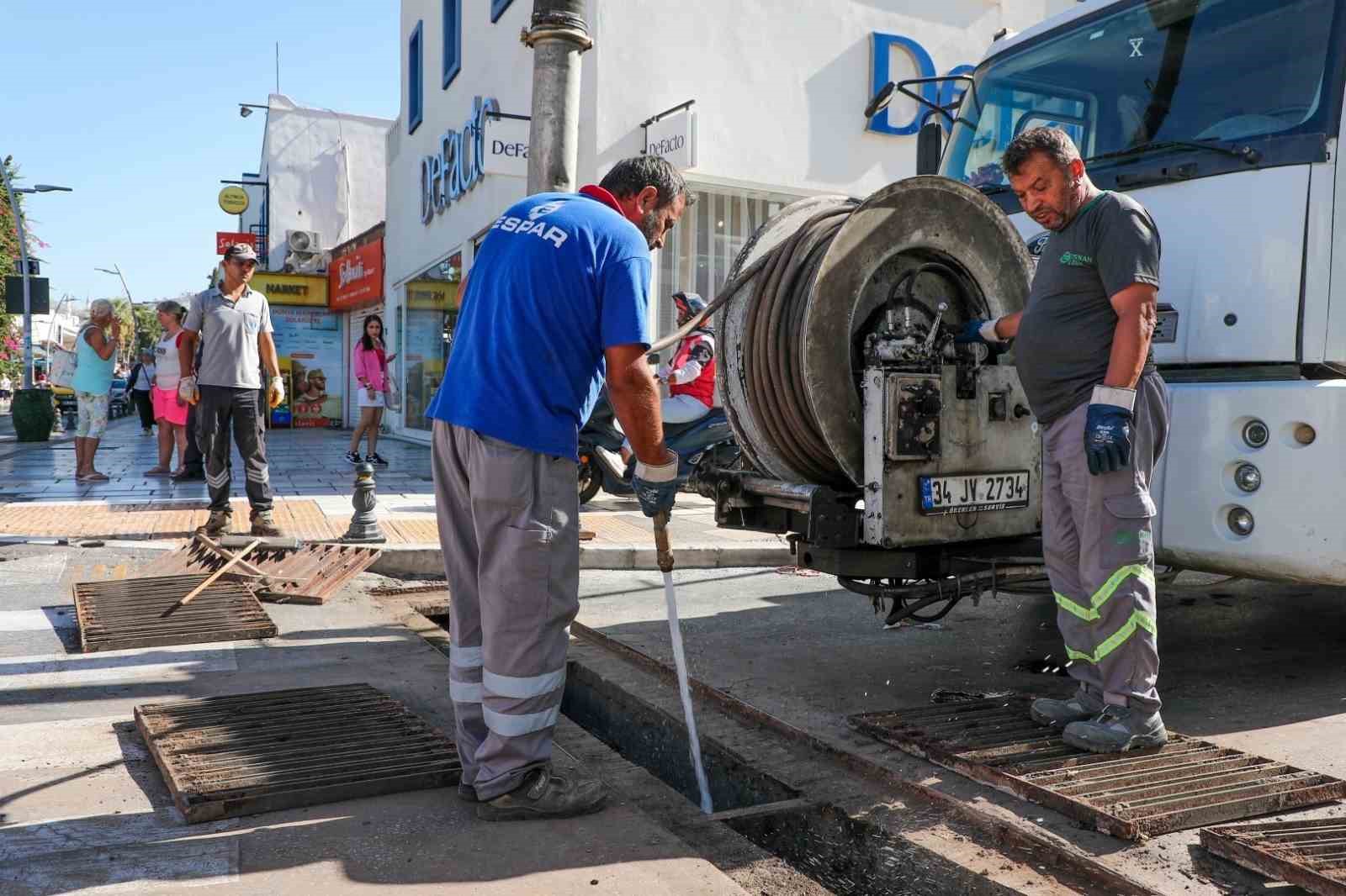 Bodrum Belediyesi Fen İşleri Müdürlüğü tarafından temizlik ve kanal açma çalışmaları kapsamında yağmur suyu hatları ile mazgallar temizlenerek tazyikli suyla yıkanıyor. Çalışmalar ile hatların sağlıklı bir şekilde çalışması sağlanırken yağışlarda meydana gelebilecek su baskınlarının önüne geçilmesi amaçlanıyor.