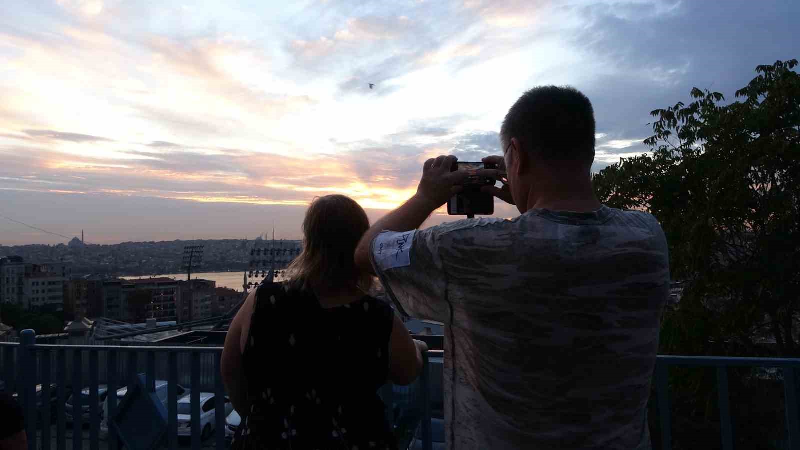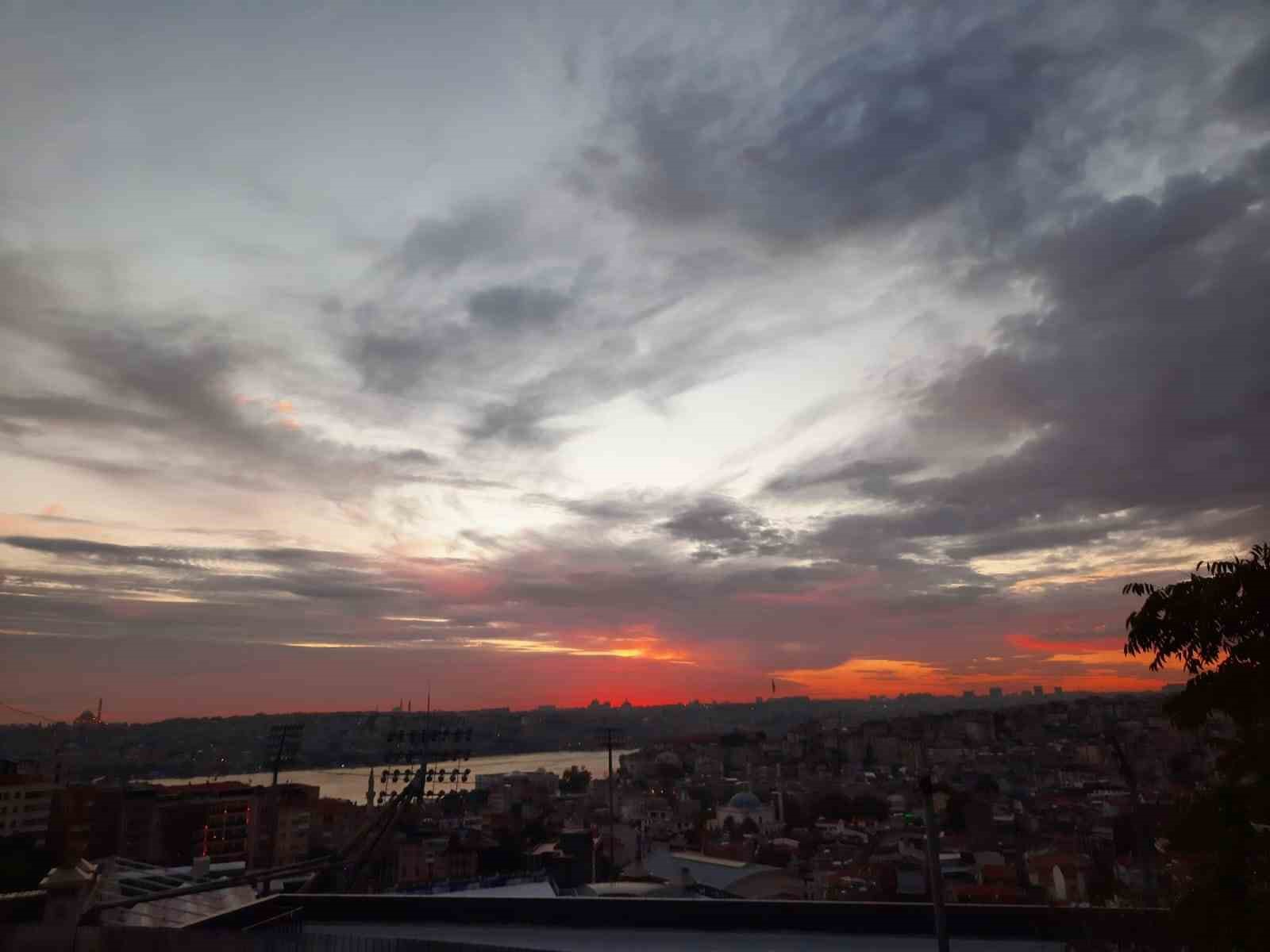 İstanbul Beyoğlu’nda gün batımı kartpostallık manzara oluştururken, vatandaşlar o anları kayıt altına aldı.