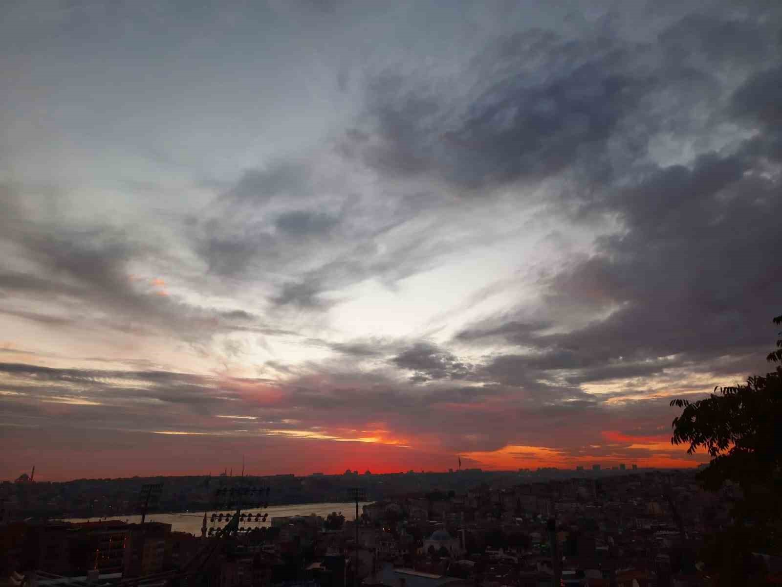 İstanbul Beyoğlu Tepebaşında gün batımı kartpostallık görüntüler oluşturdu. Ortaya çıkan manzara görenleri mest etti. Gün batımı adeta görsel şölen oluştururken, vatandaşlar cep telefonlarıyla manzaranın fotoğrafını çekti.